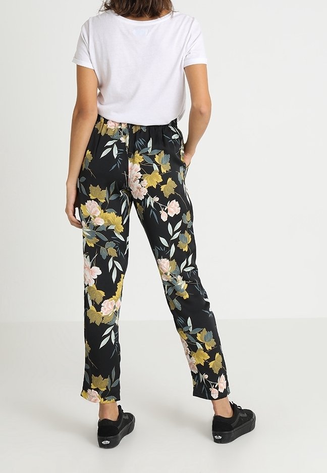 pantaloni neri a fiori