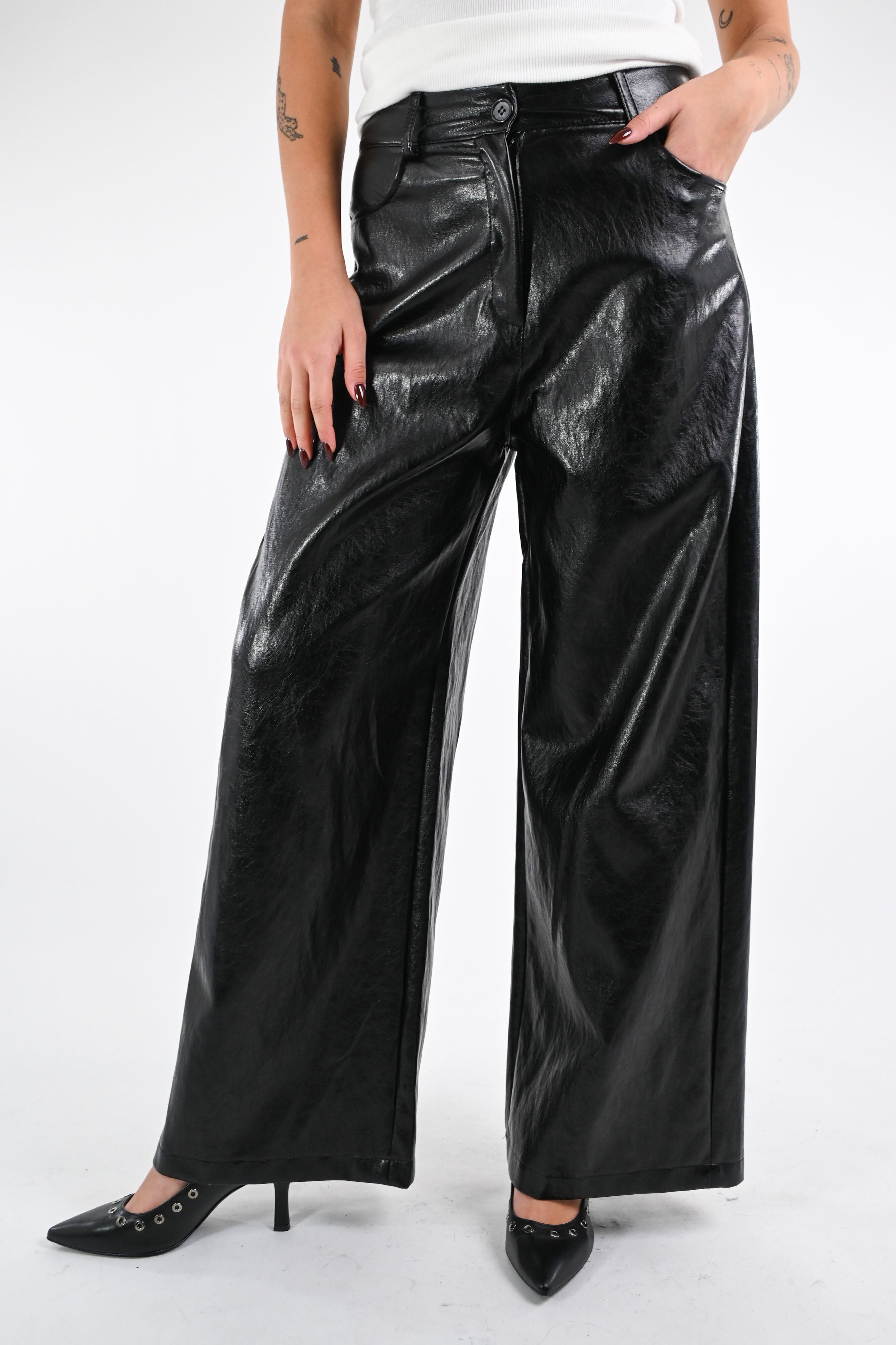 pantaloni palazzo ecopelle