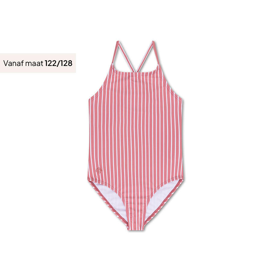 costume intero a righe rosso e bianco