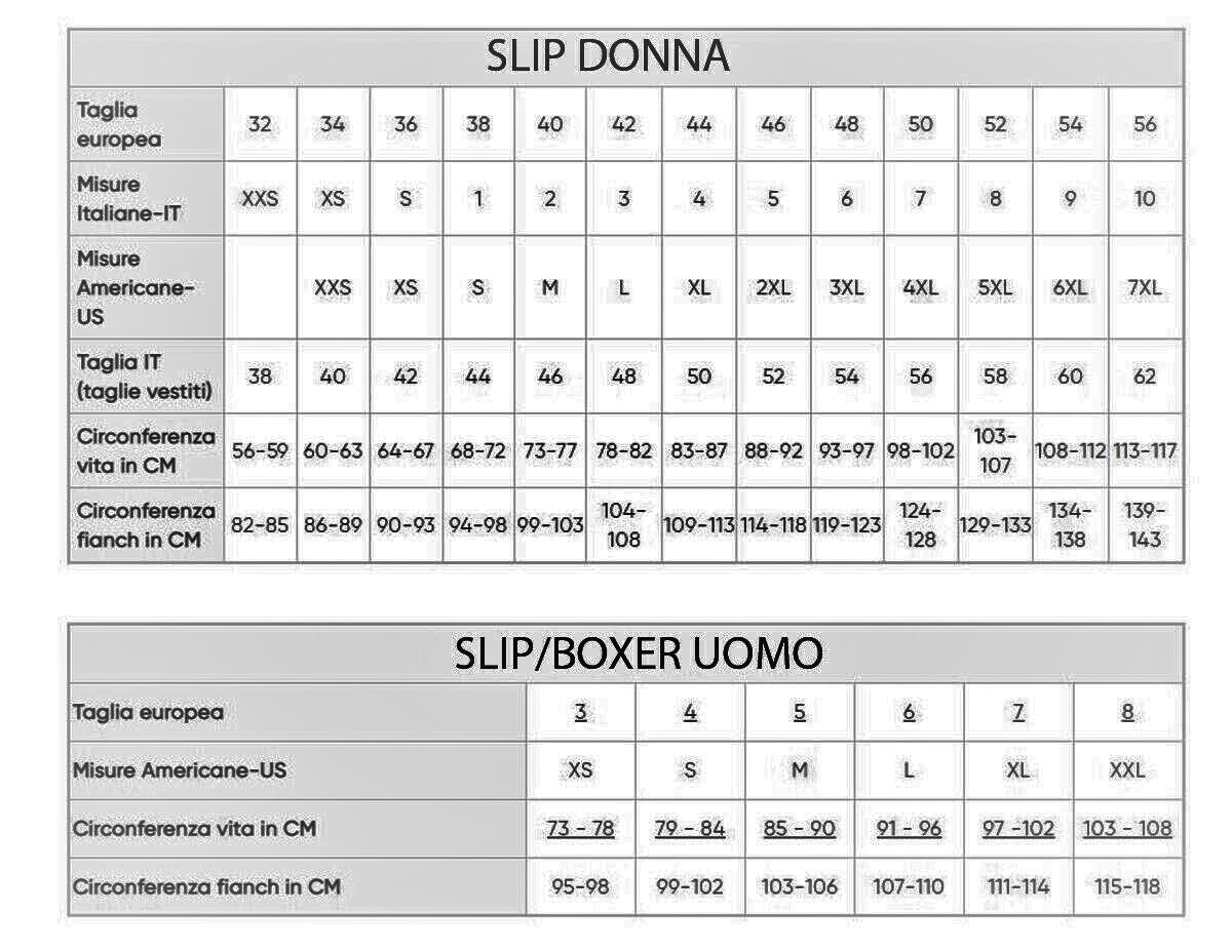 misure slip donna