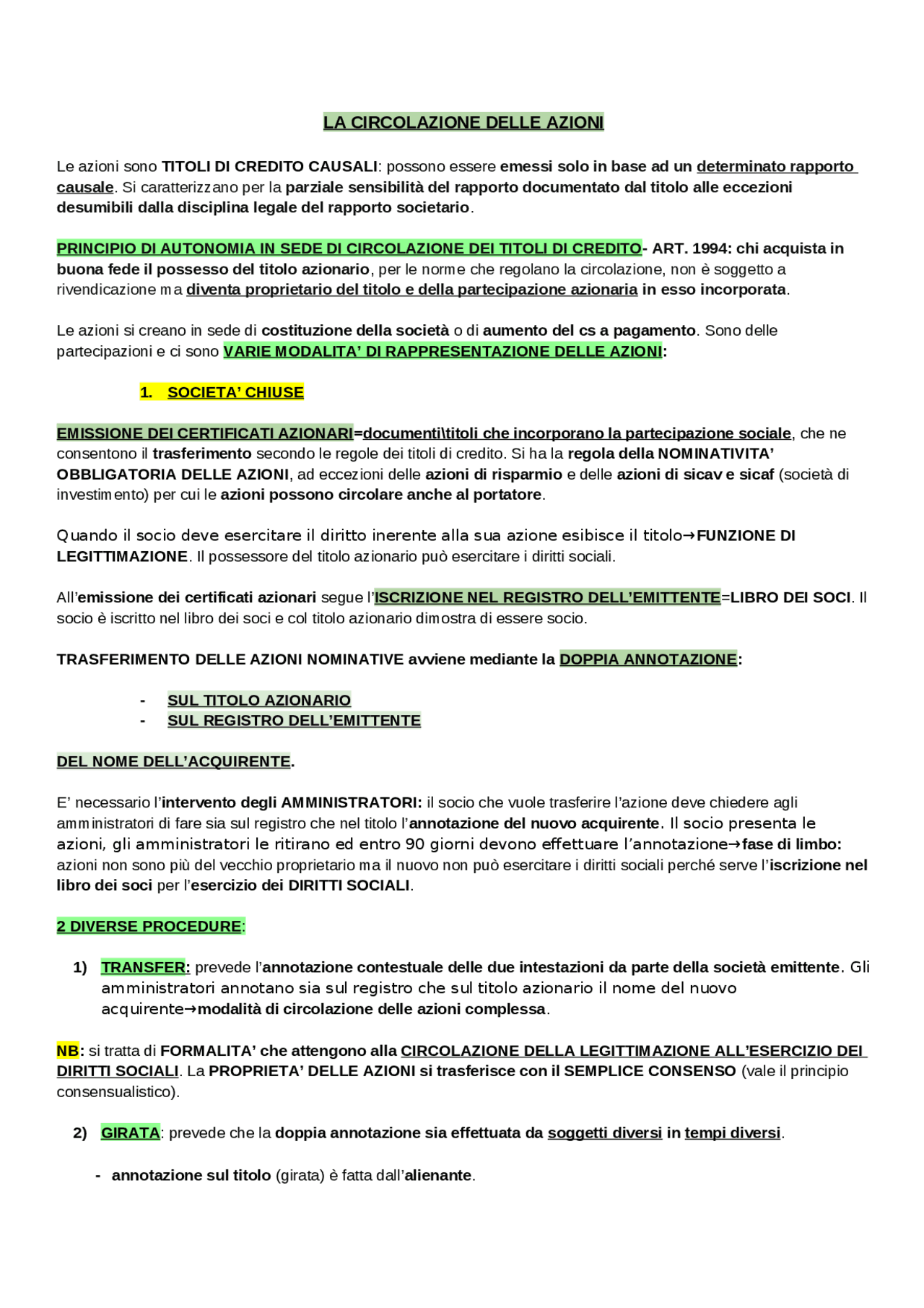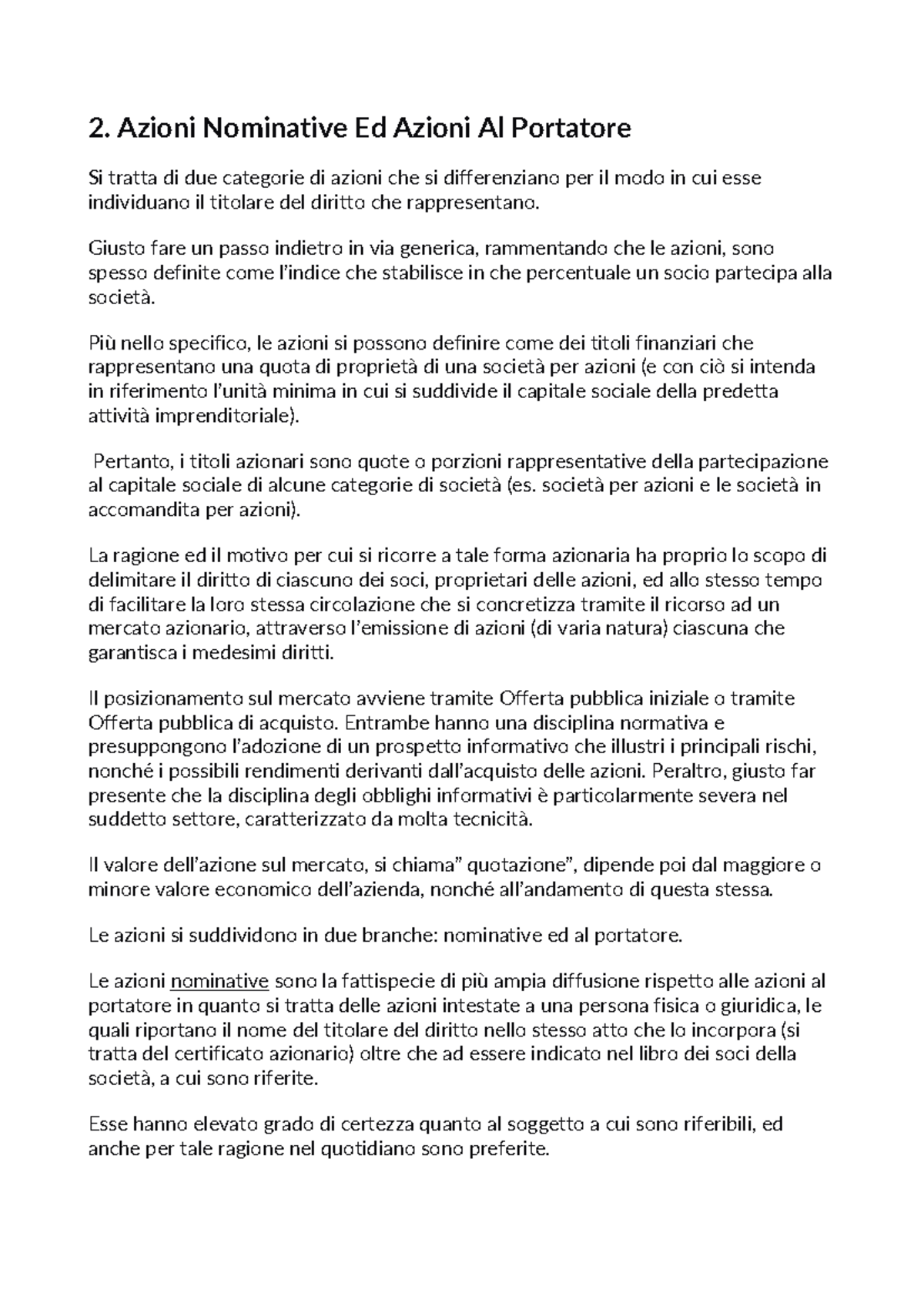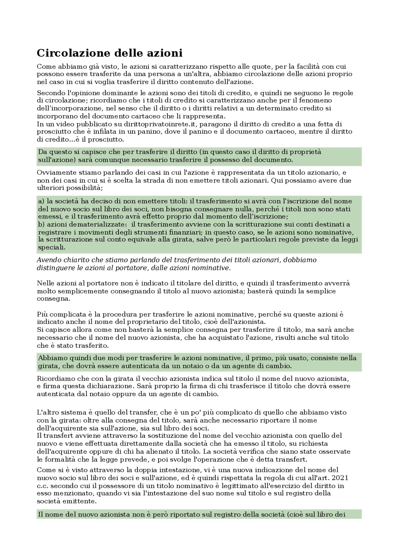 azioni in circolazione