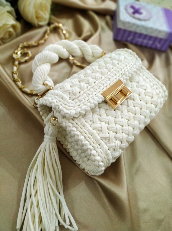 borsa bianca catena oro