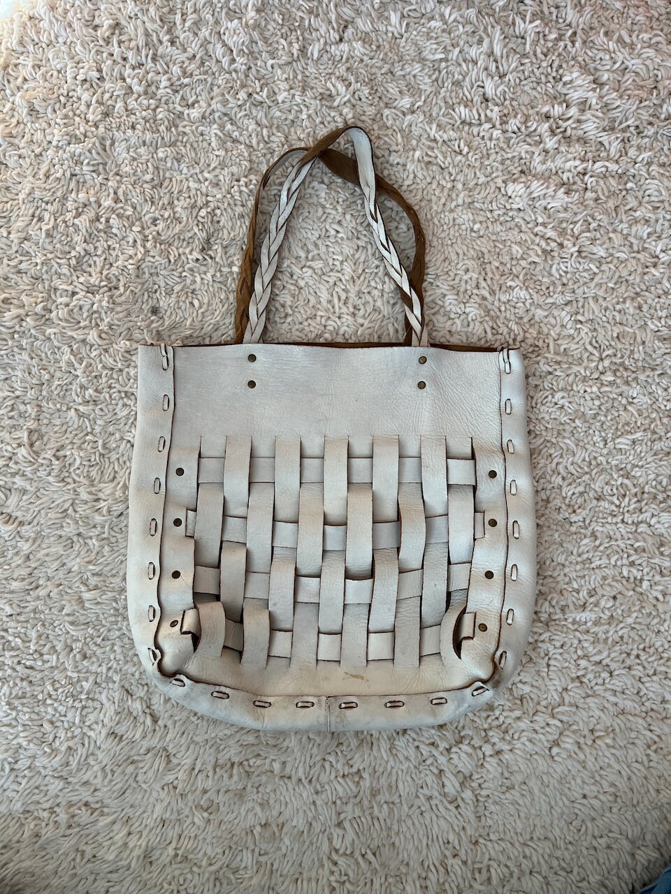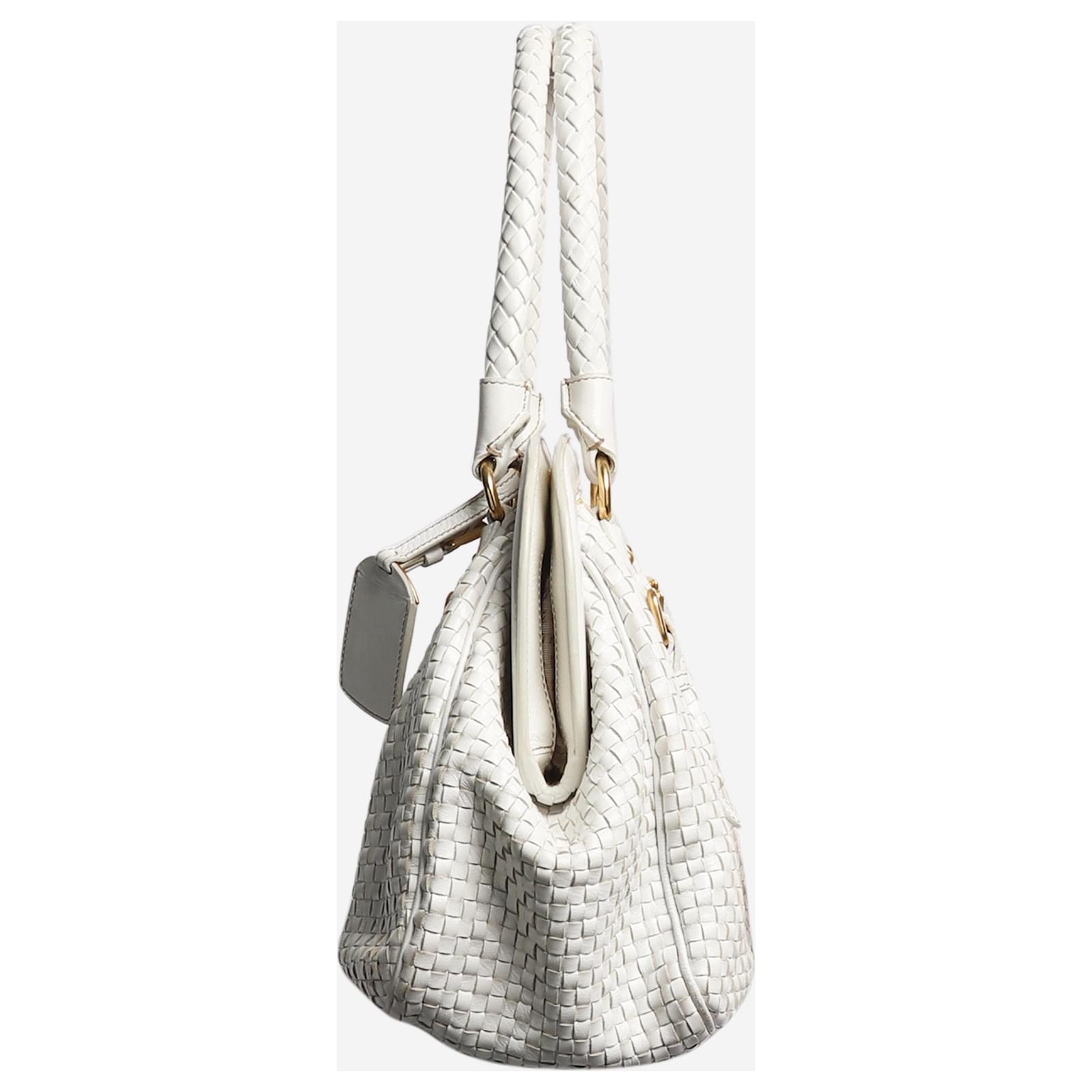 borsa bianca pelle intrecciata