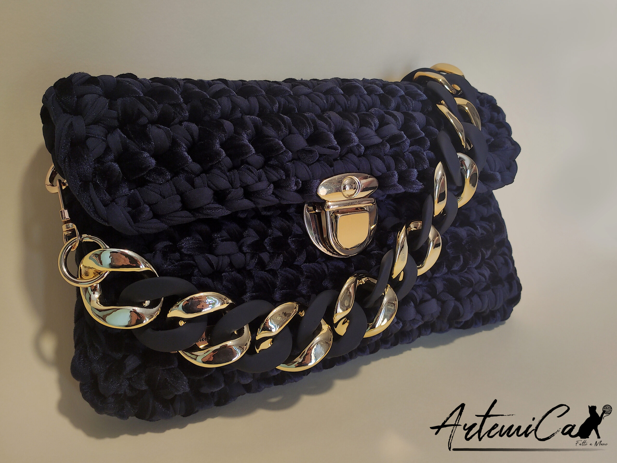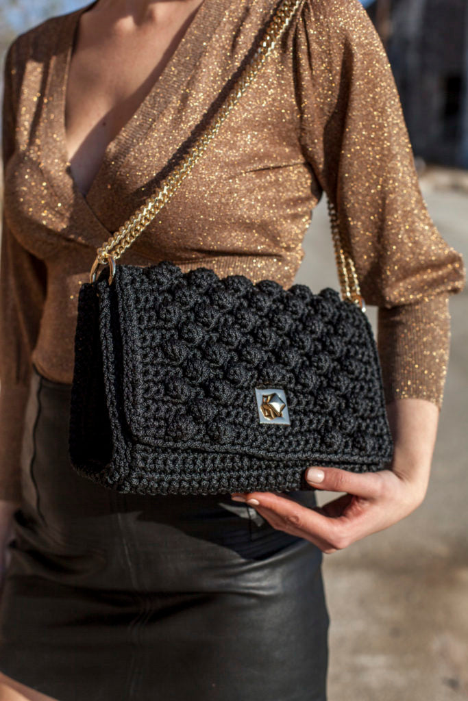 borsa nera con catena oro