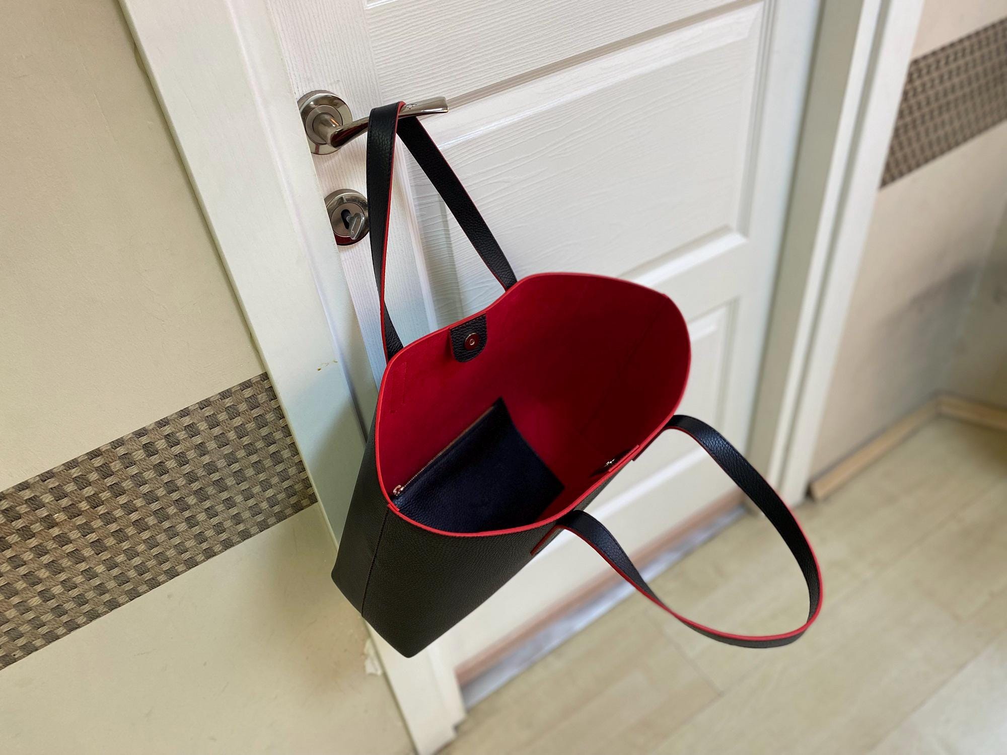 borsa nera interno rosso