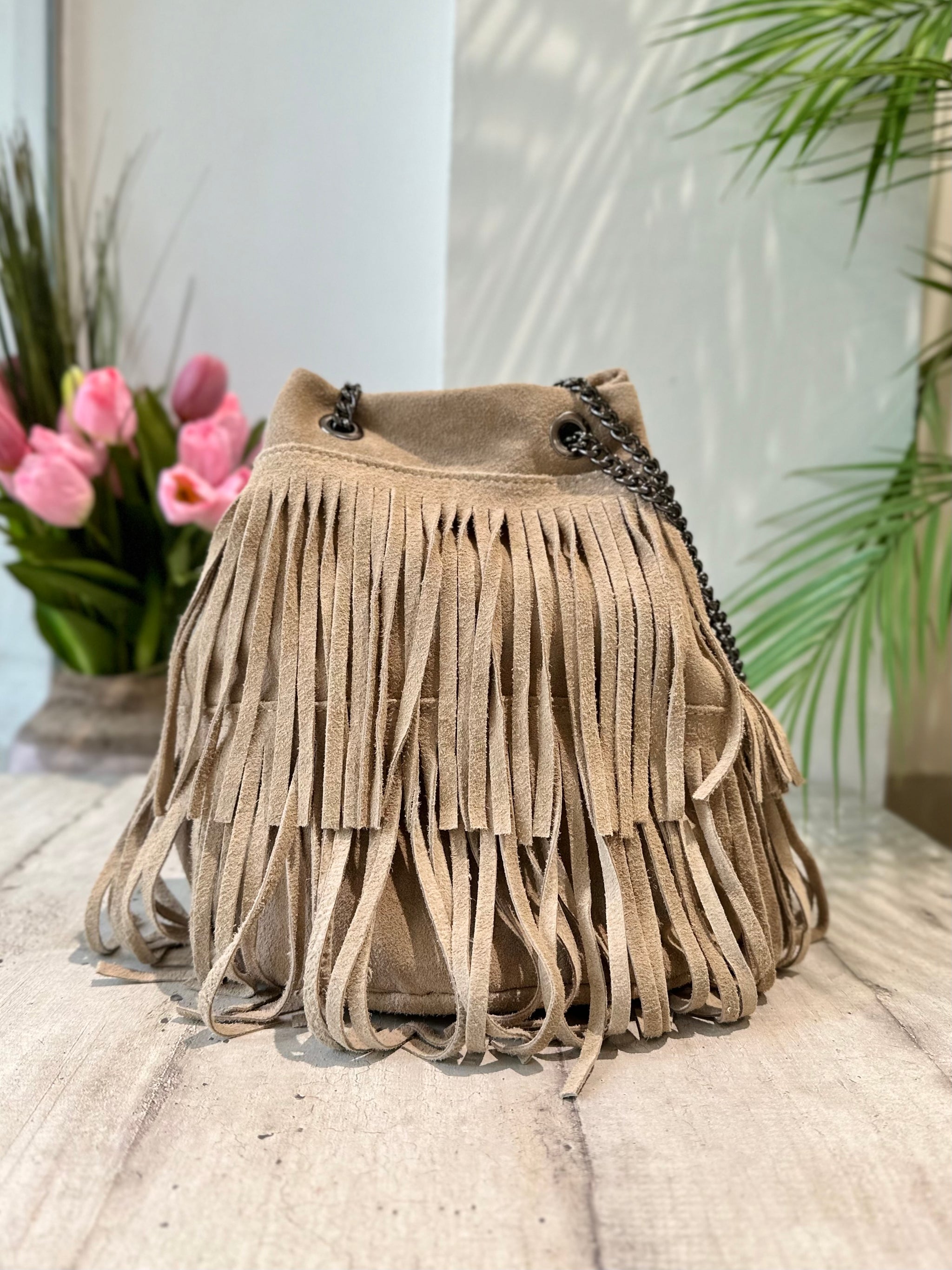 borsa secchiello con frange