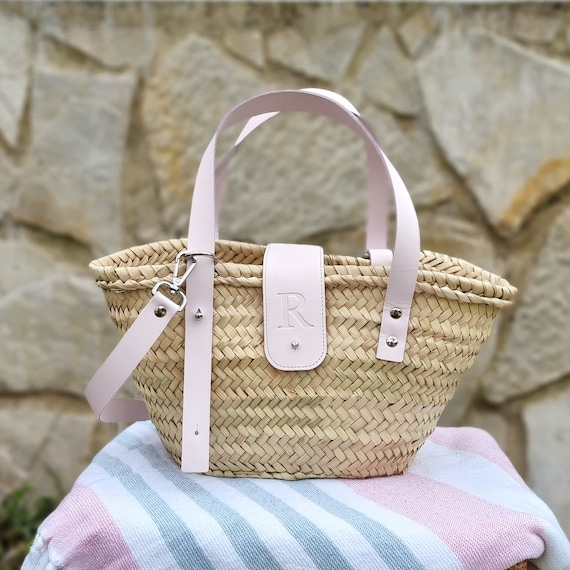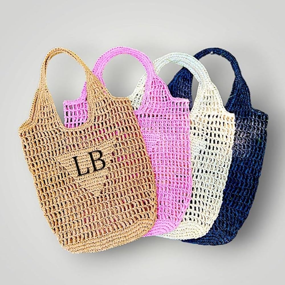borse di paglia con iniziali