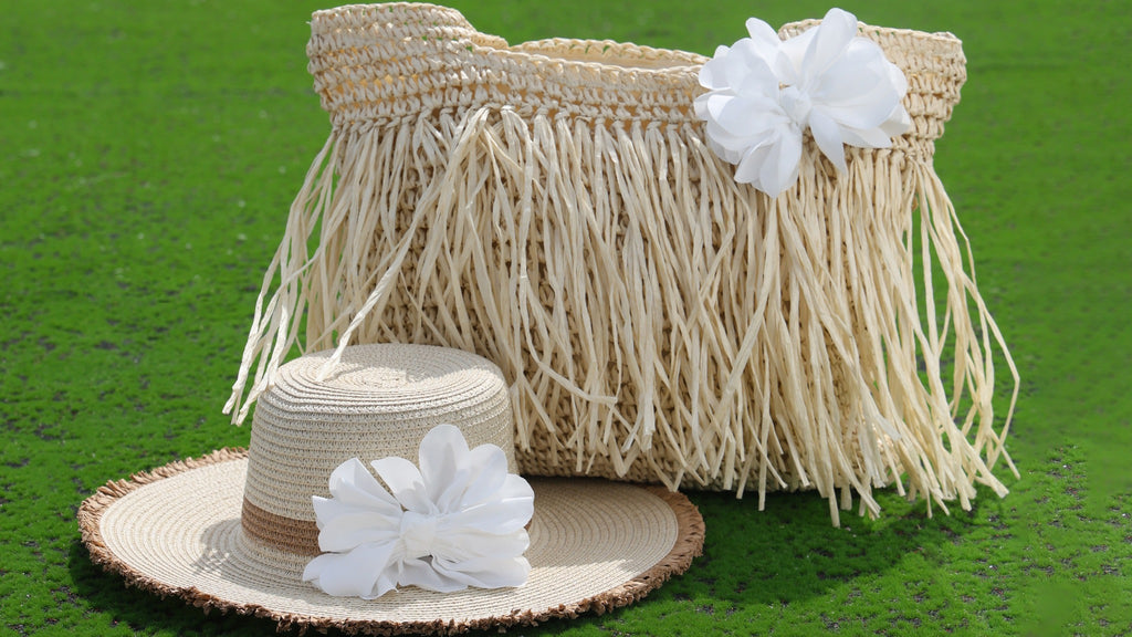 borse di paglia decorate con fiori