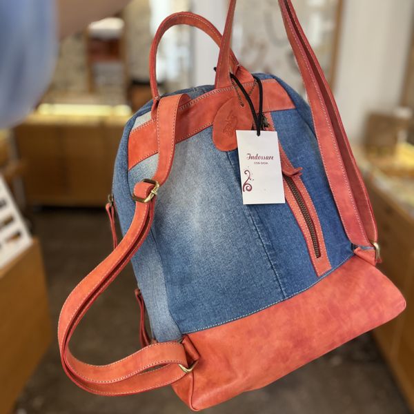 zaino jeans e pelle