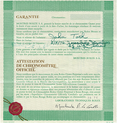 certificato rolex
