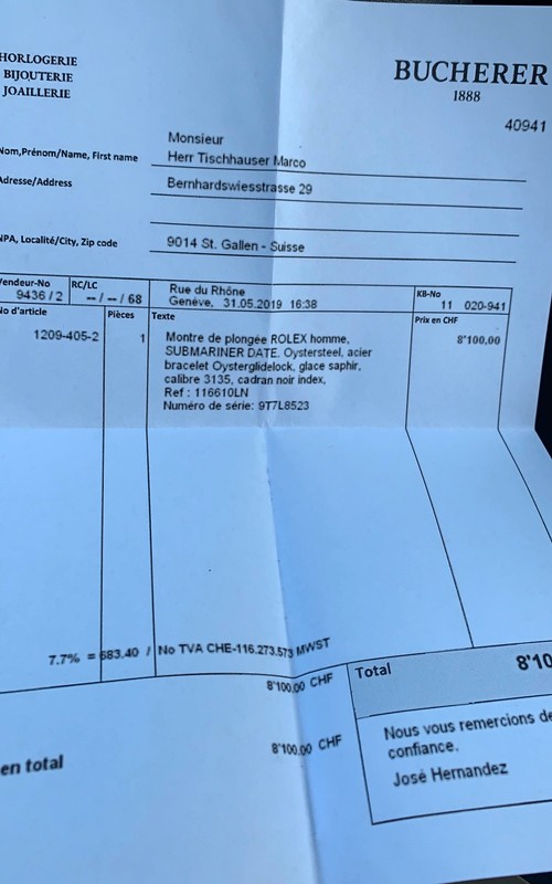 fattura rolex