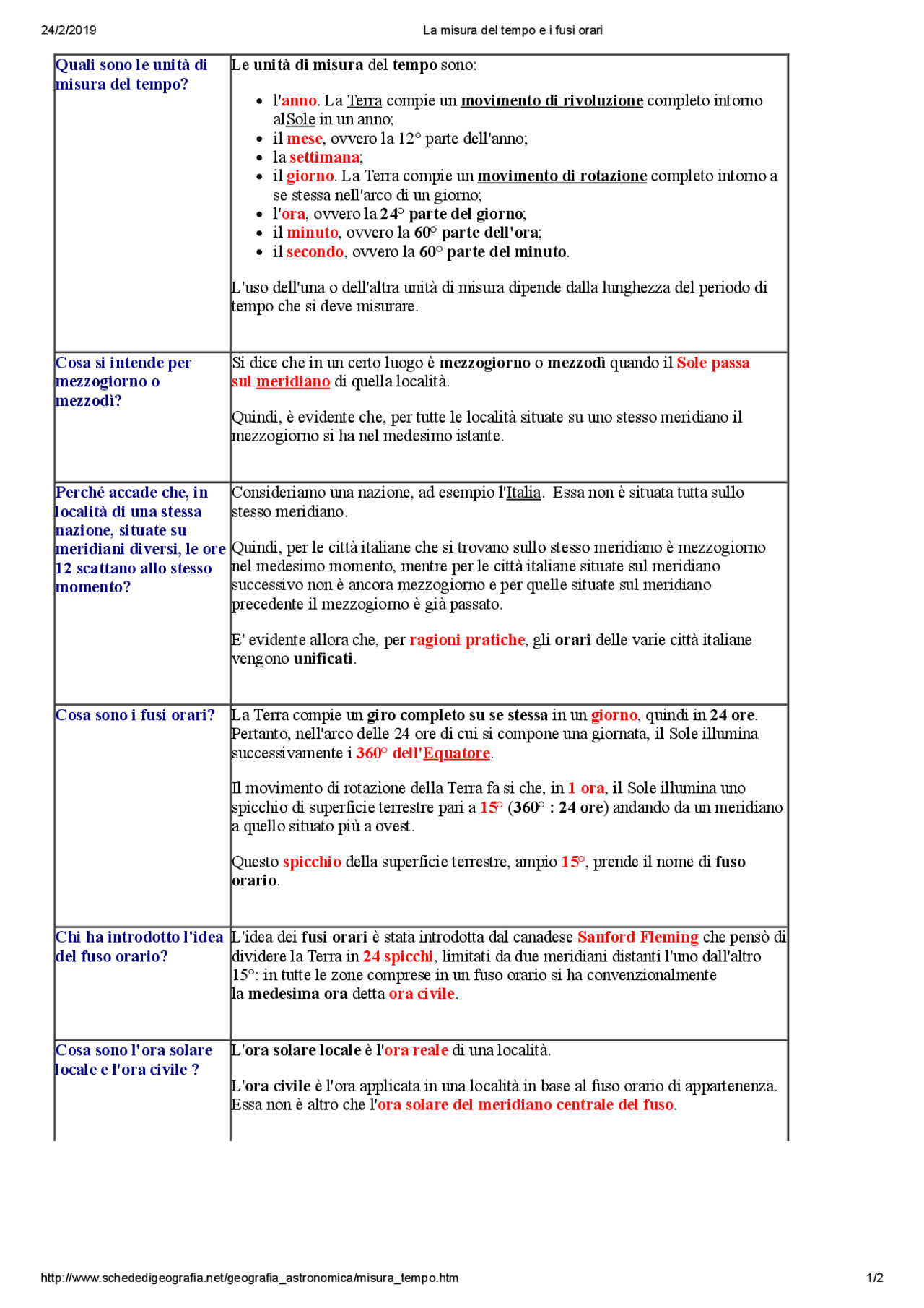 i fusi orari riassunto