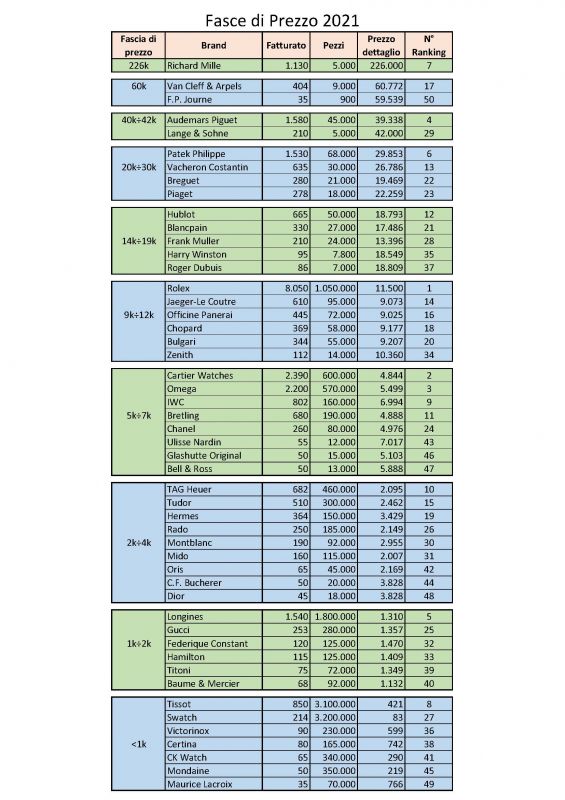 marche orologi per fasce di prezzo