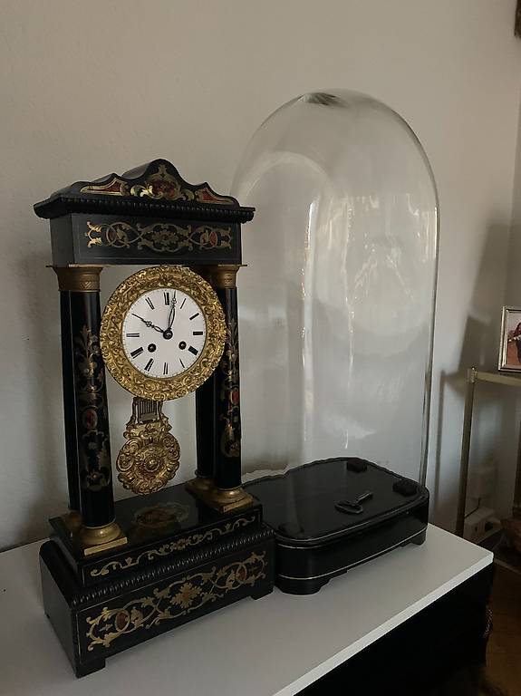 orologio antico con campana di vetro