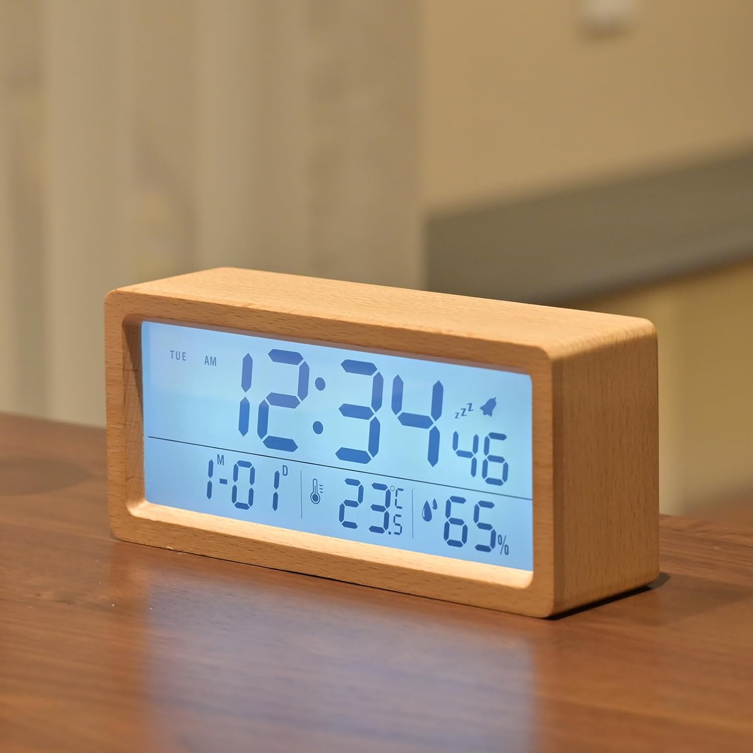 sveglia digitale legno