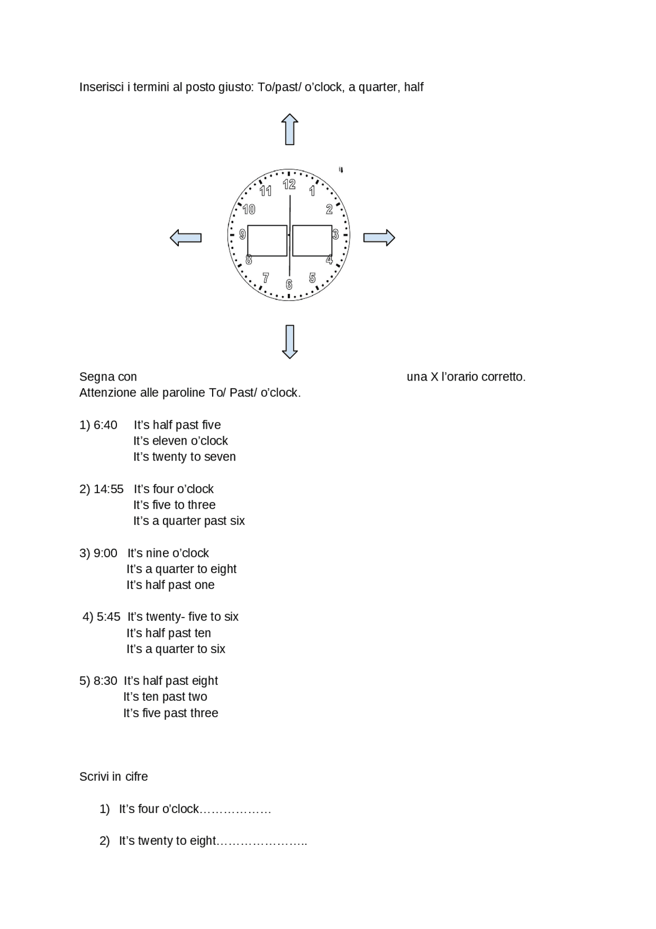 verifica inglese orologio quarta elementare