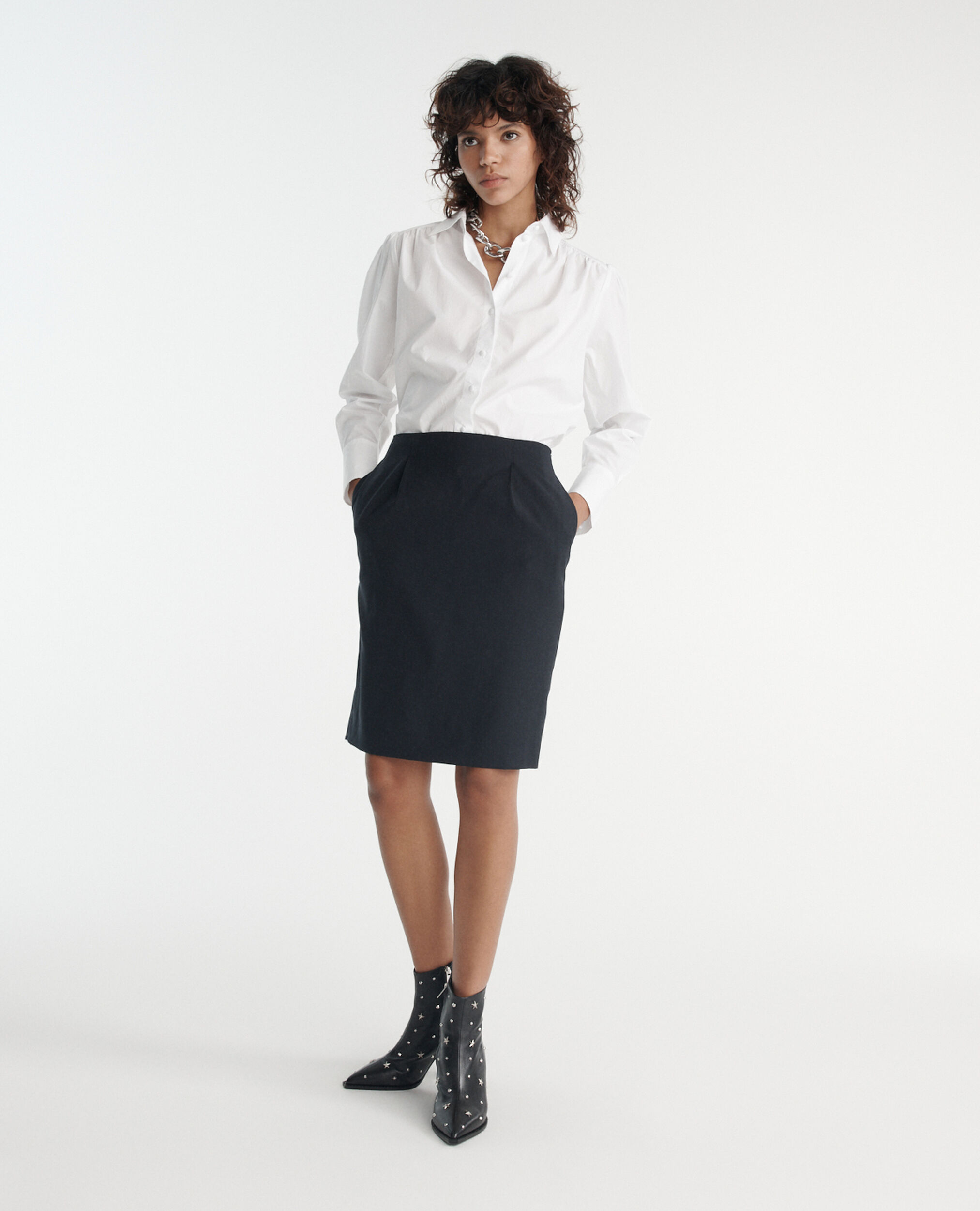 jupe crayon bleu