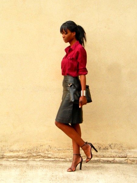jupe en cuir bordeaux