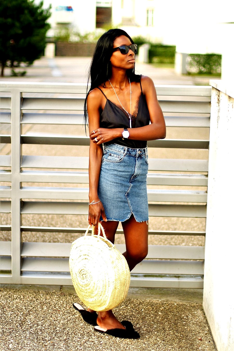 jupe jean et dentelle