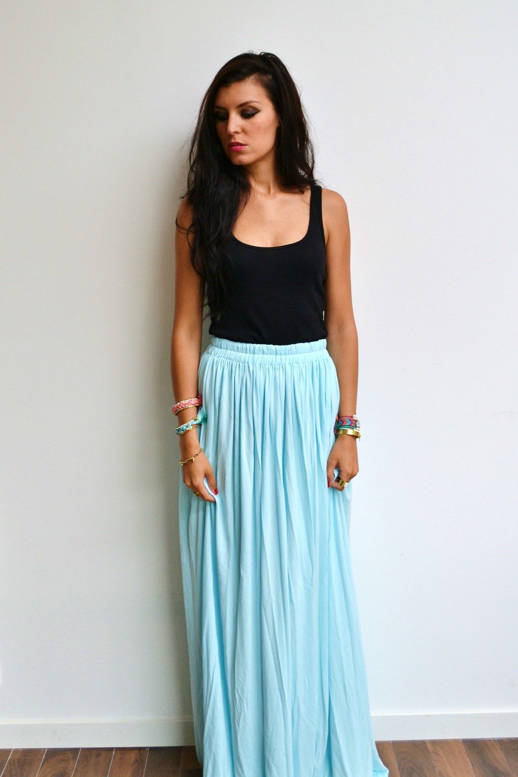 jupe longue bleu pastel