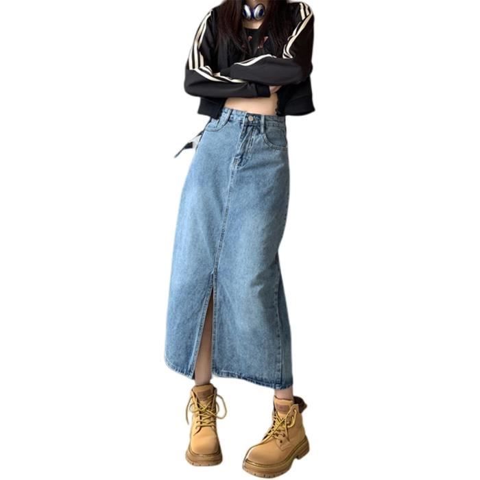 jupe longue fendue bleu