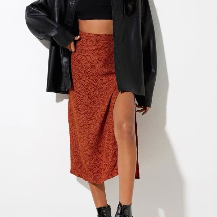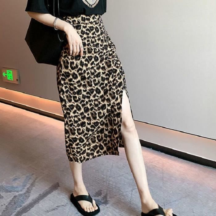 jupe longue fendue leopard