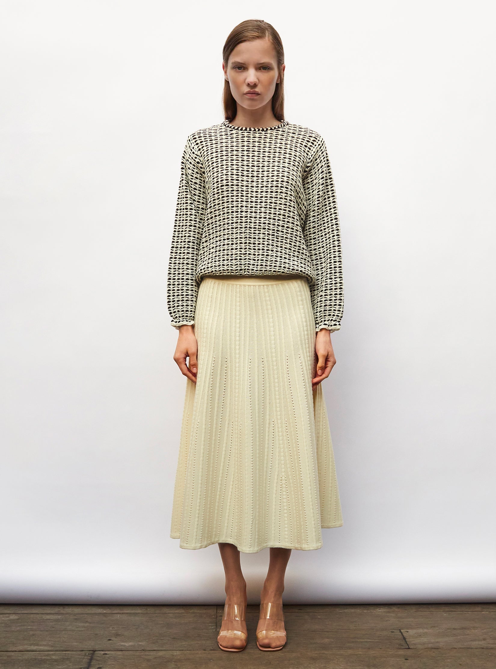 jupe longue maille beige
