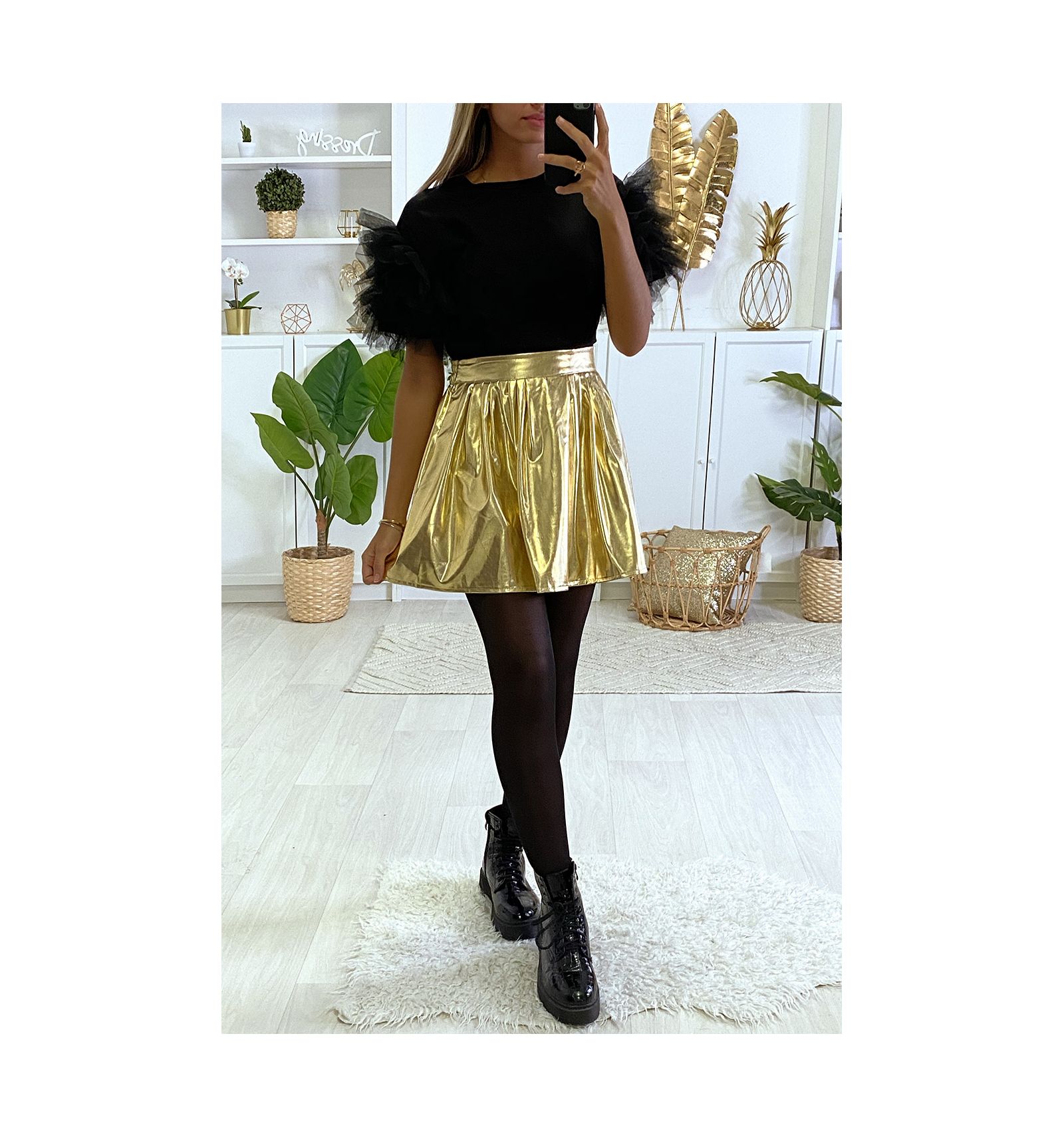 jupe longue plissee doree