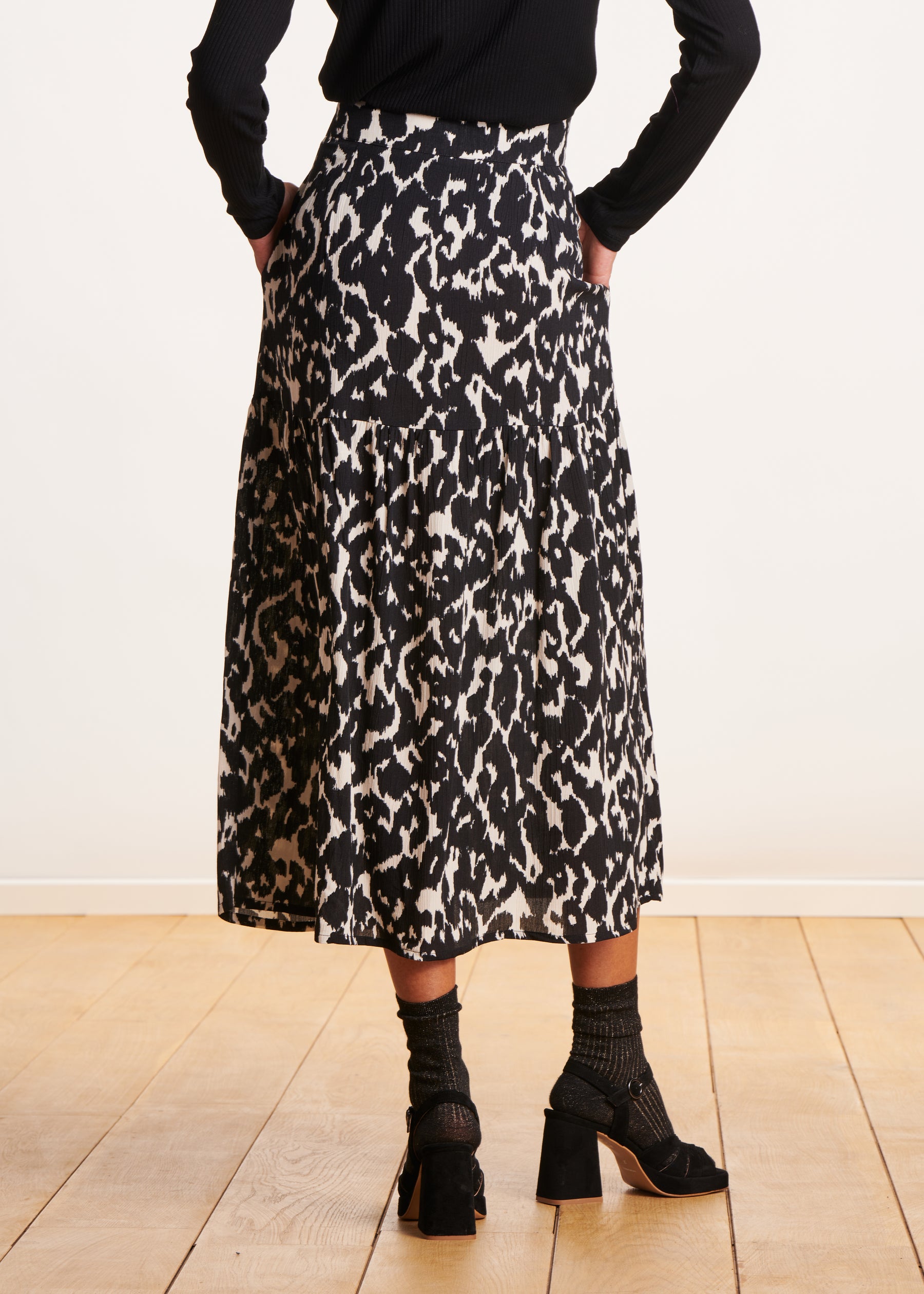 jupe longue pois noir et blanc
