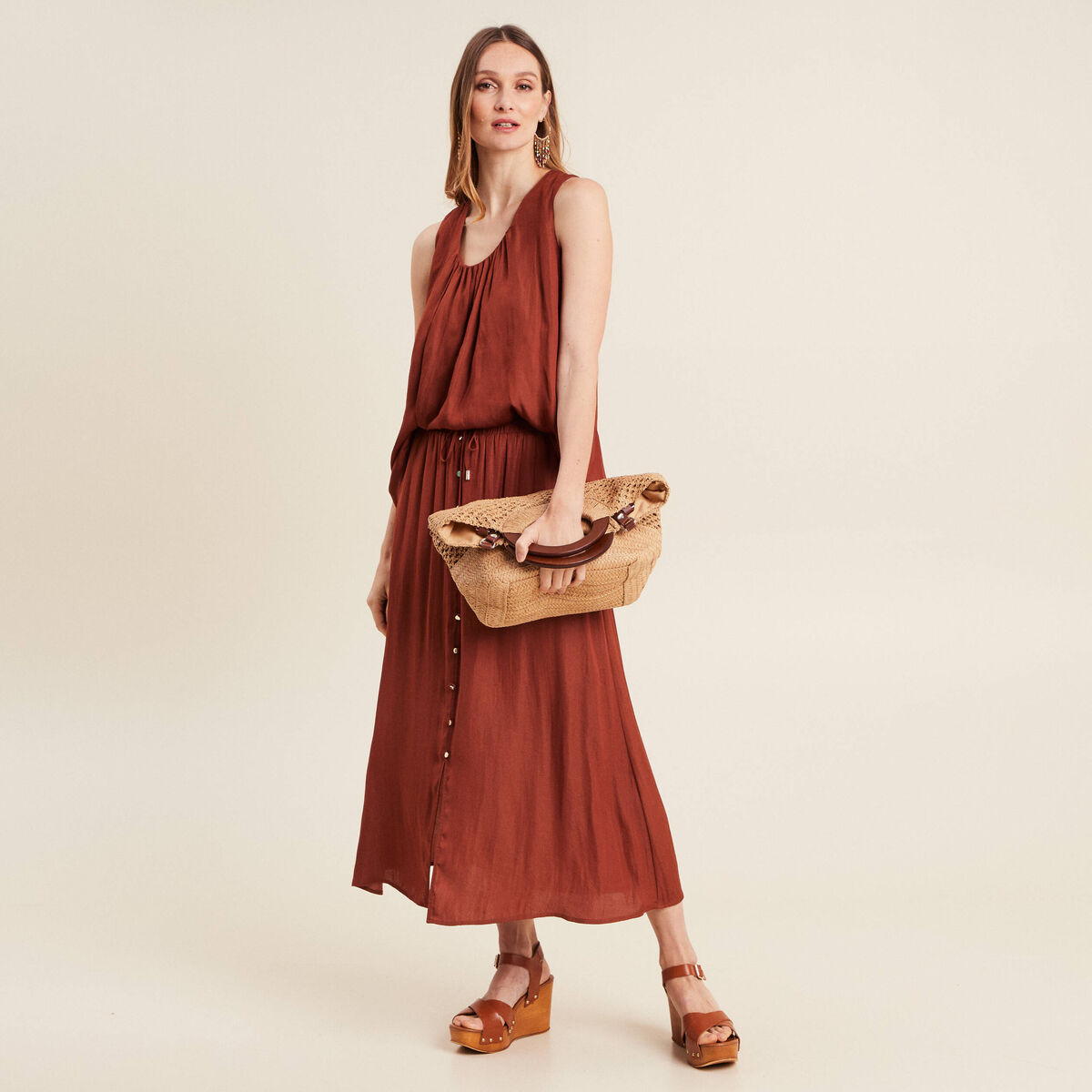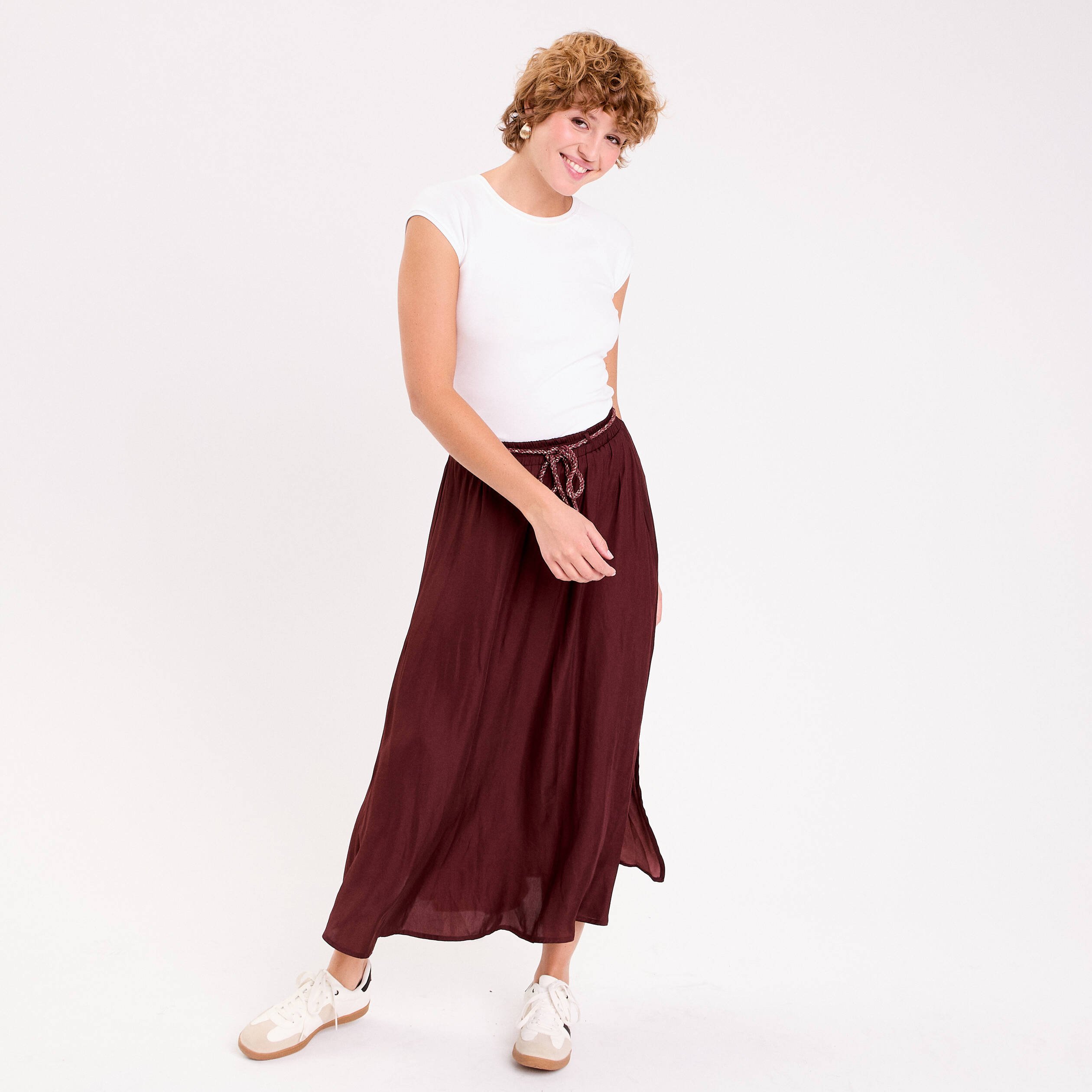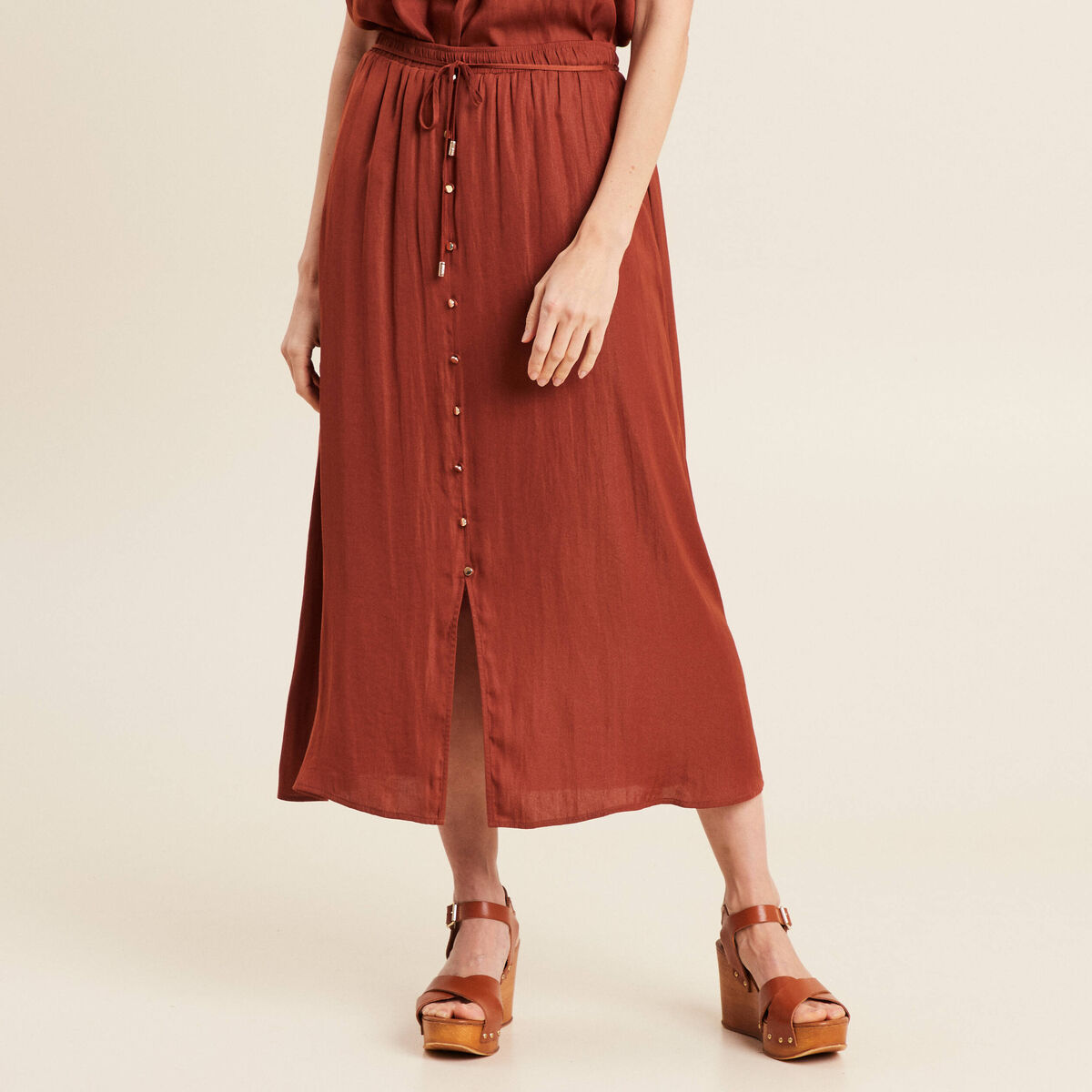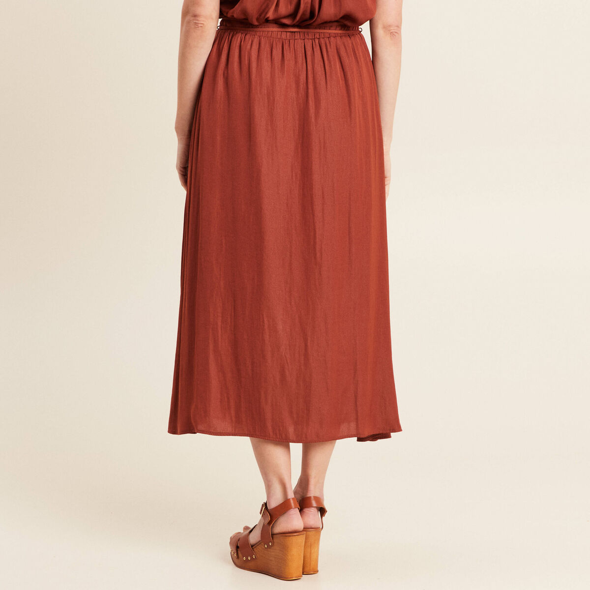 jupe longue satin marron