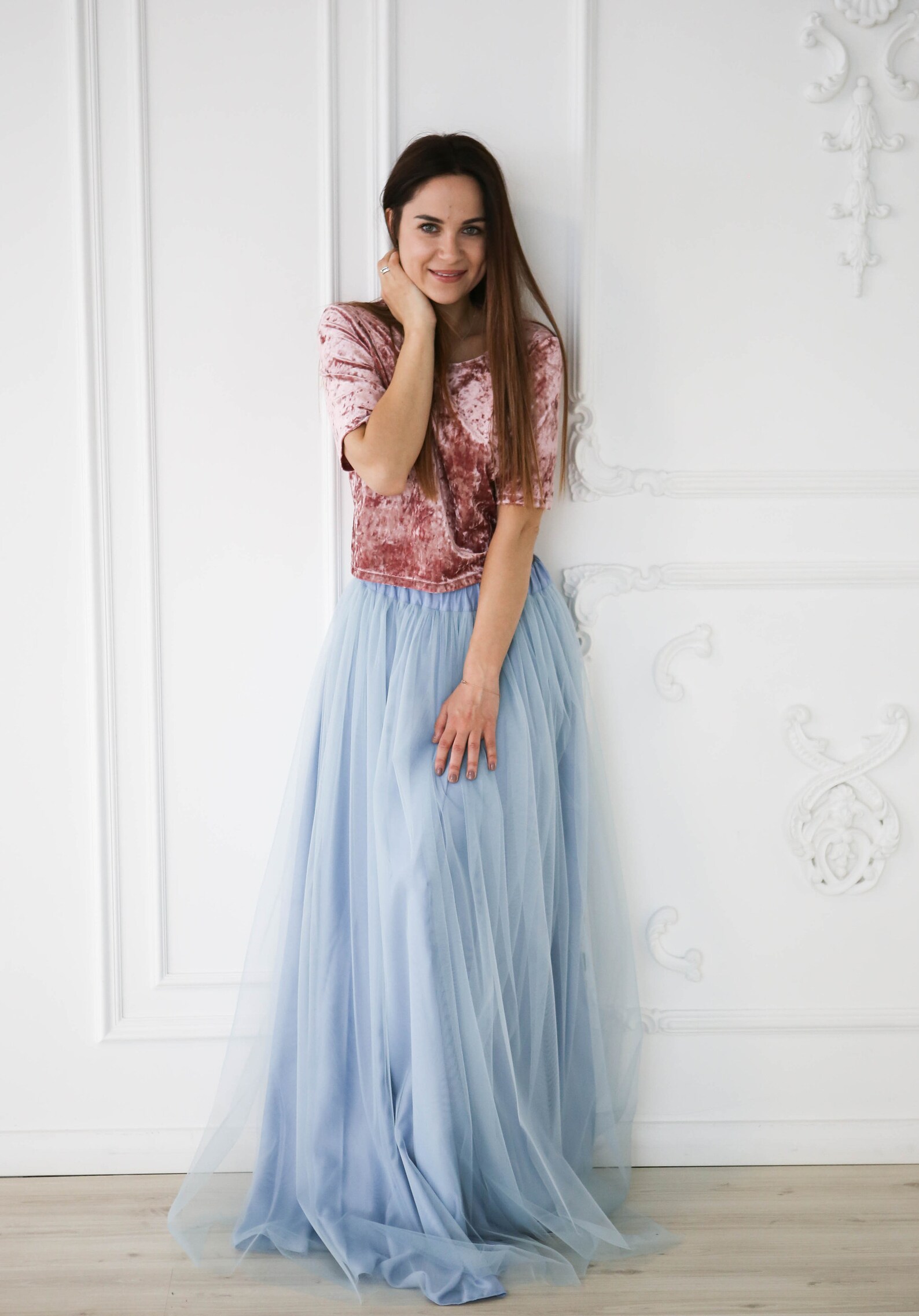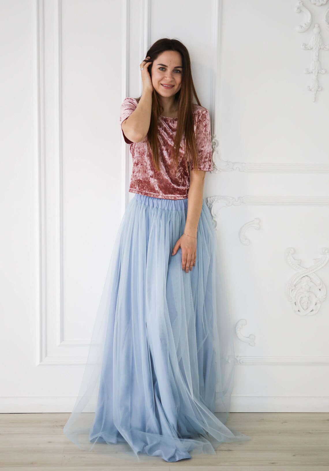 jupe longue tulle bleu