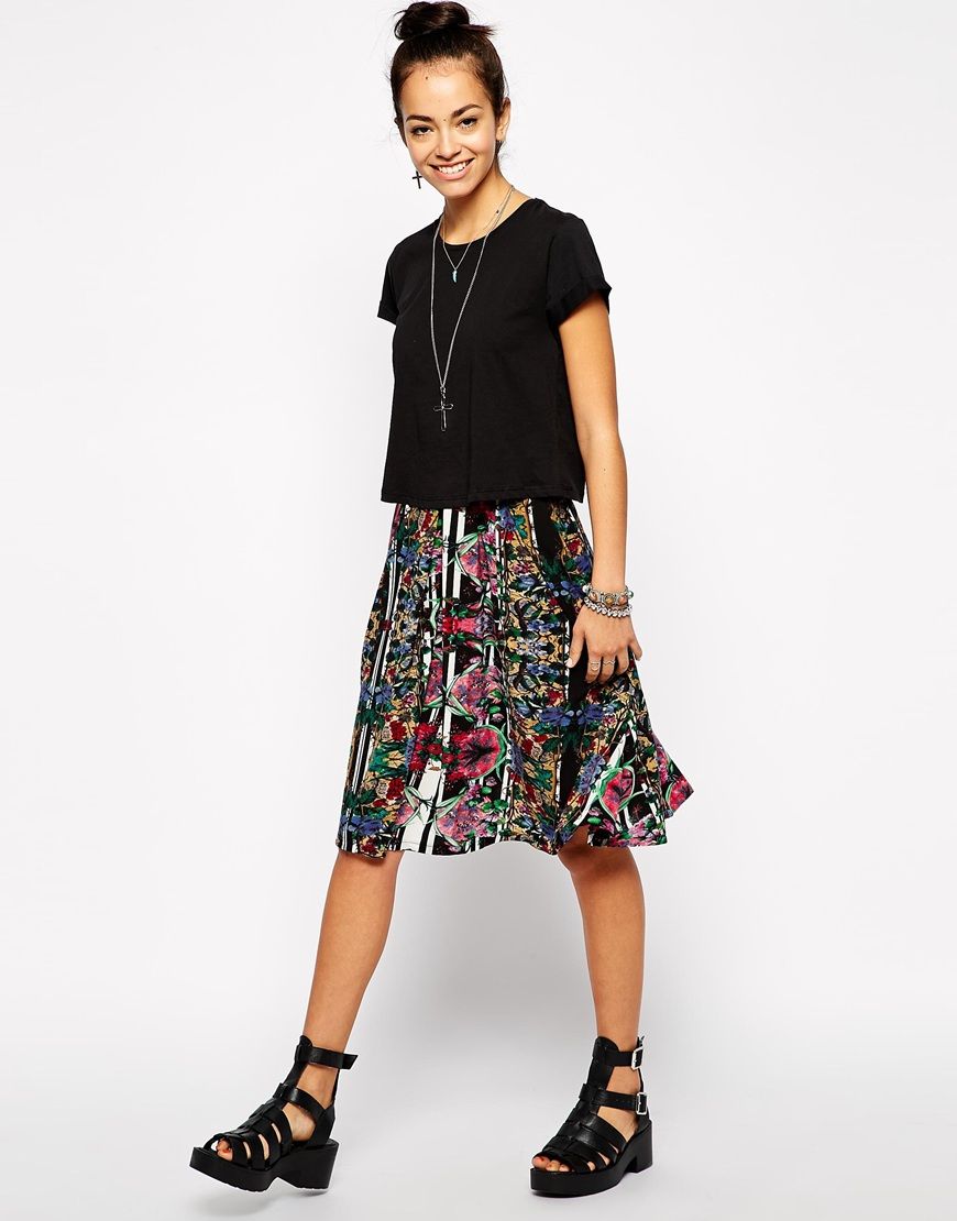 jupe mi longue a fleurs