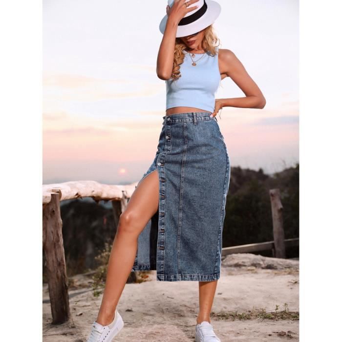 jupe mi longue bouton