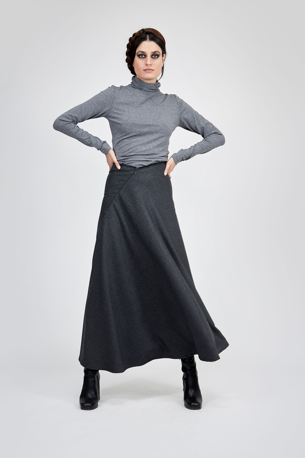 jupe noire longue evasee