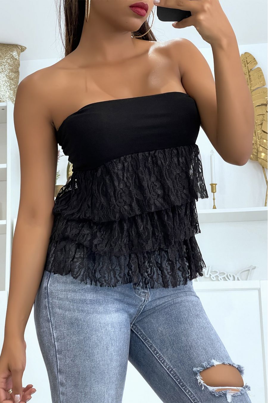 jupe noire volants femme