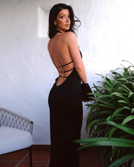 robe dos nu noir manche longue