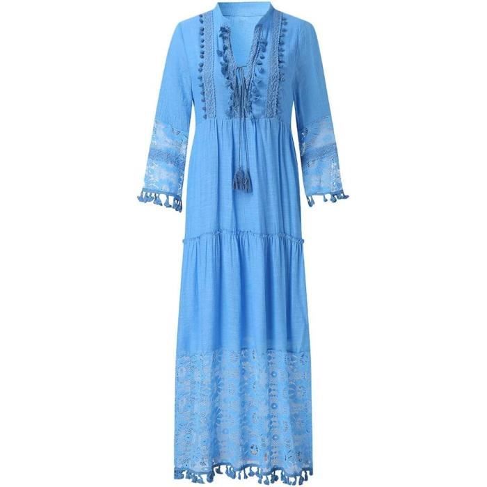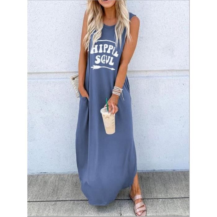 robe longue femme bleu