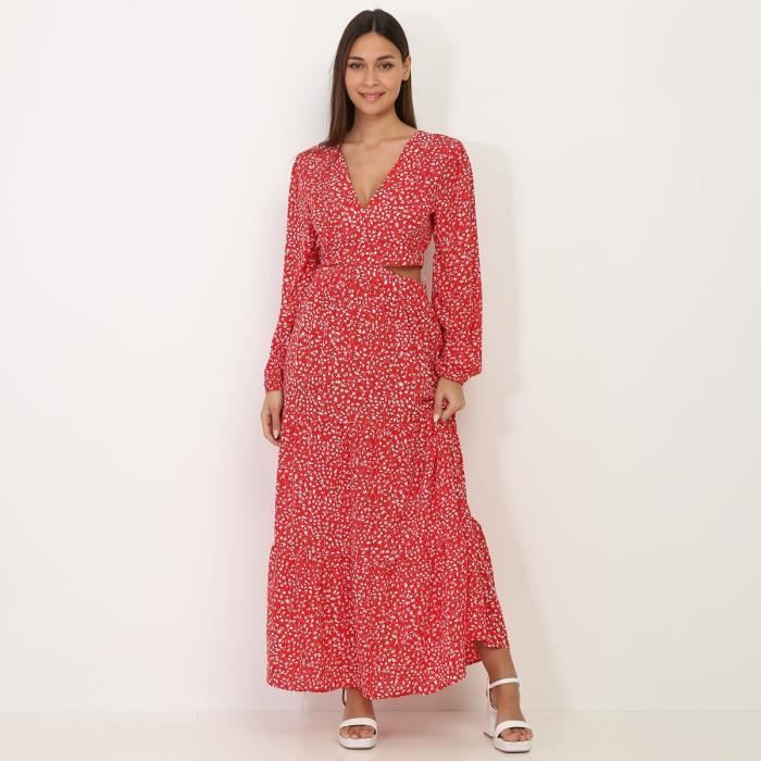robe longue rouge fleurie