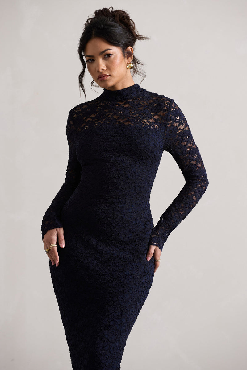 robe mi longue bleu marine