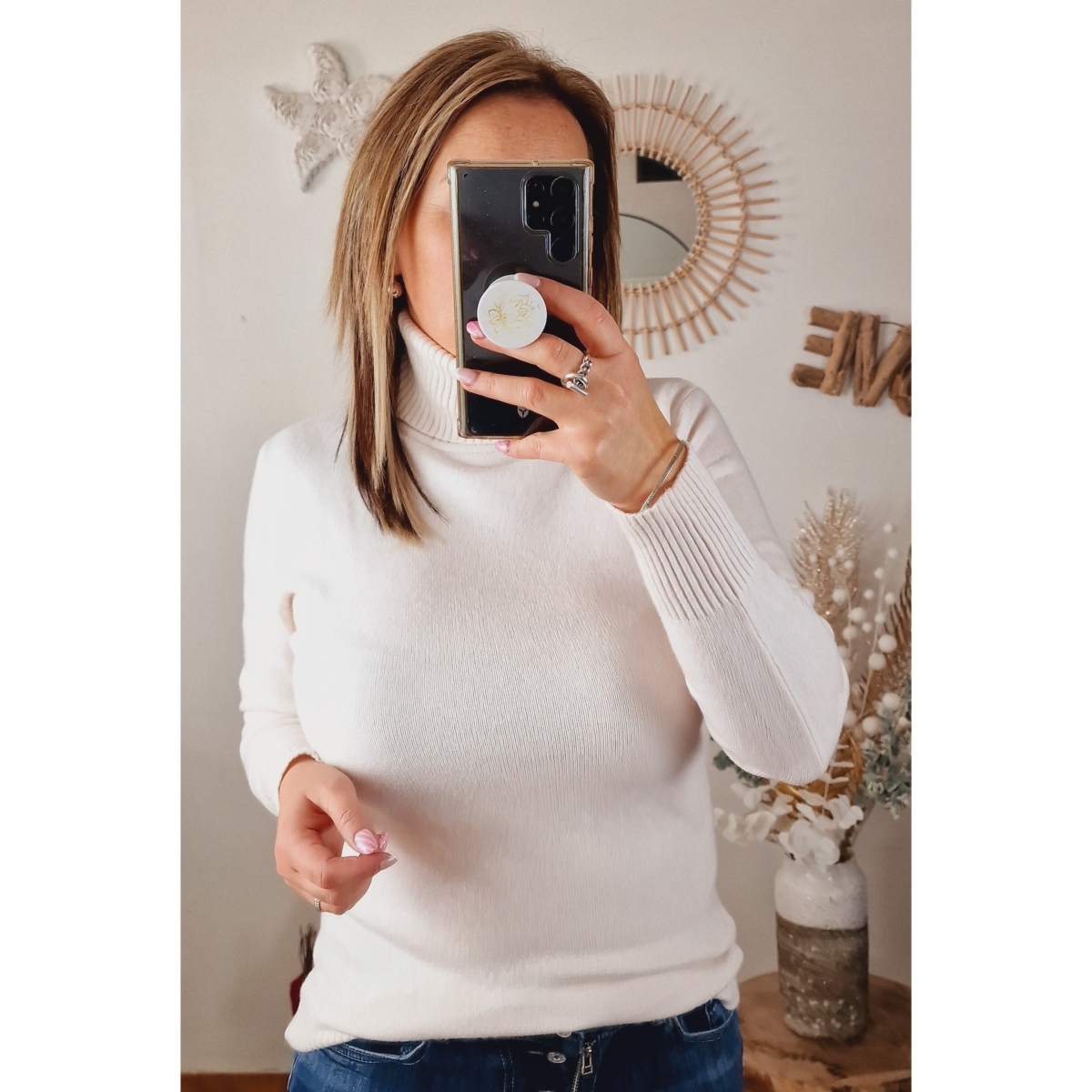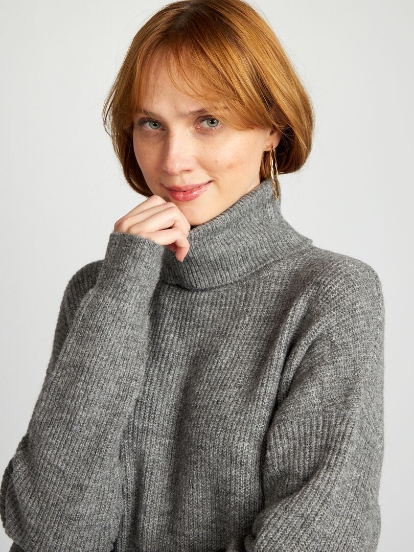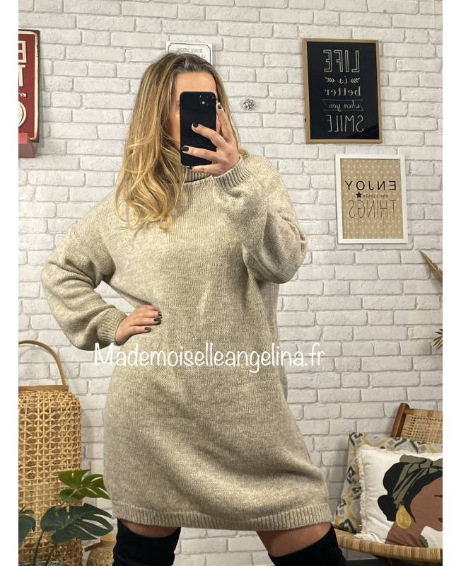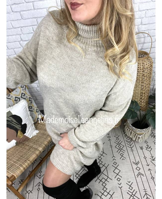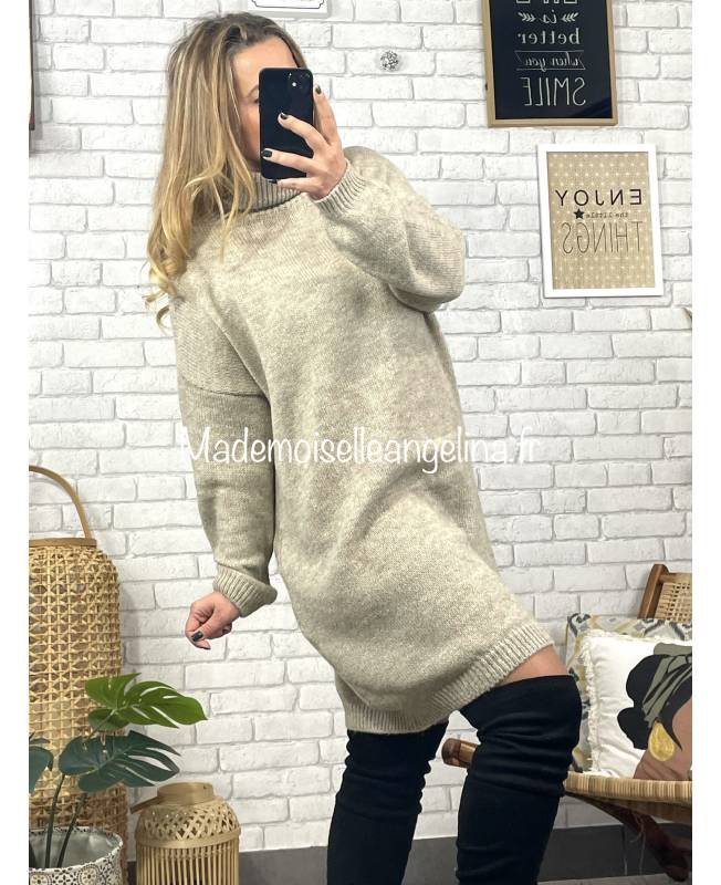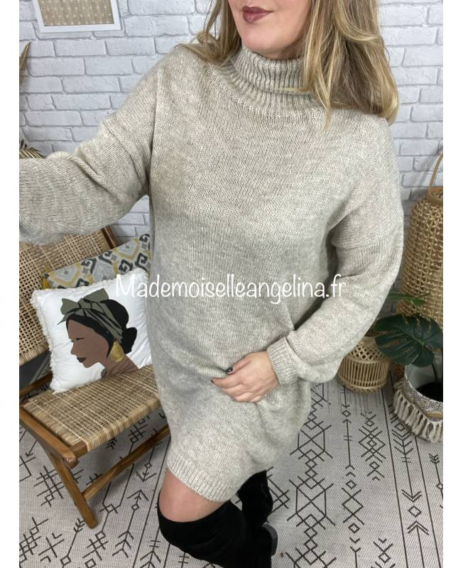 robe pull col roule beige