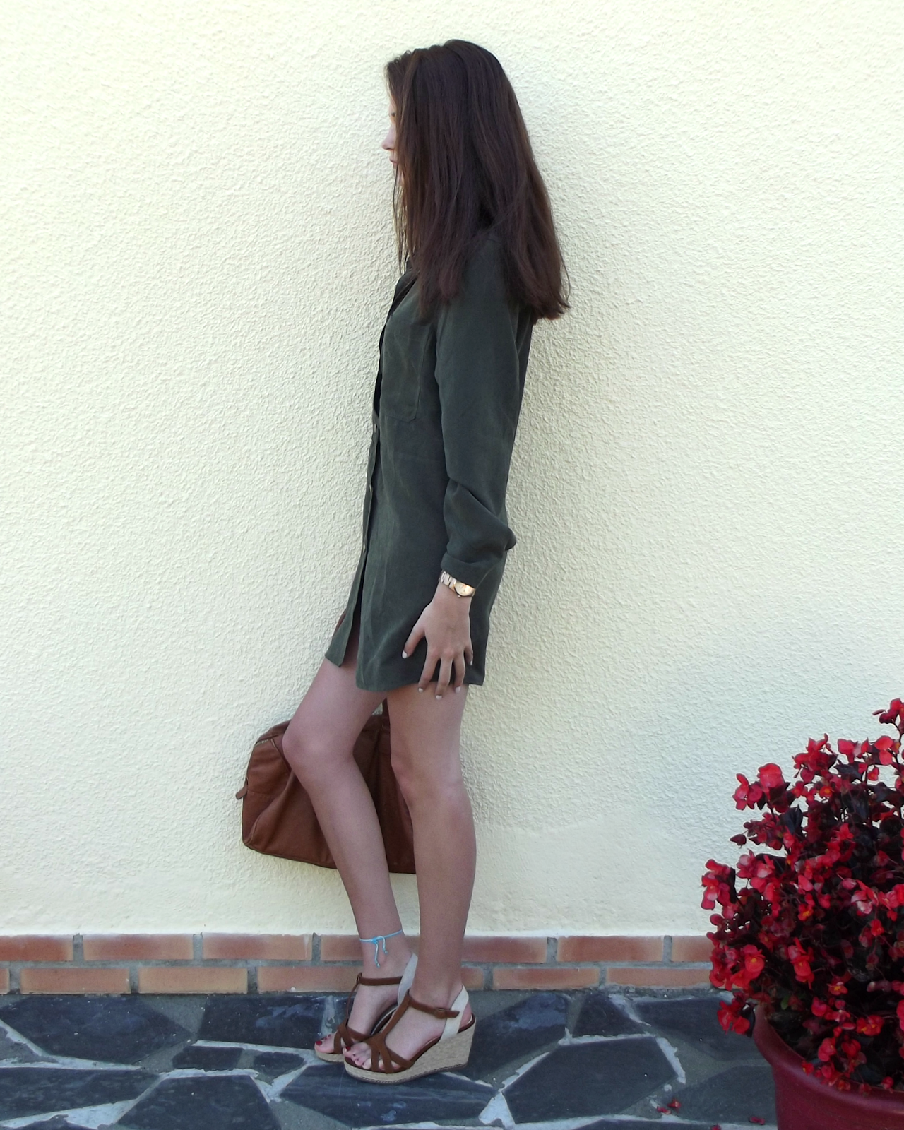 zara robe chemise kaki