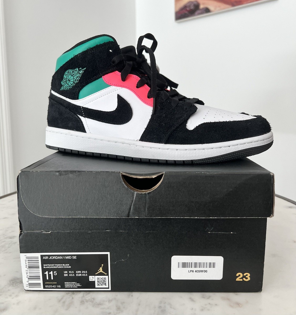 air jordan 1 mid se white hot punch black