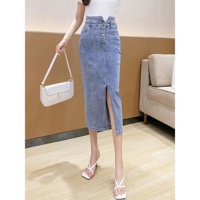 jupe denim crayon