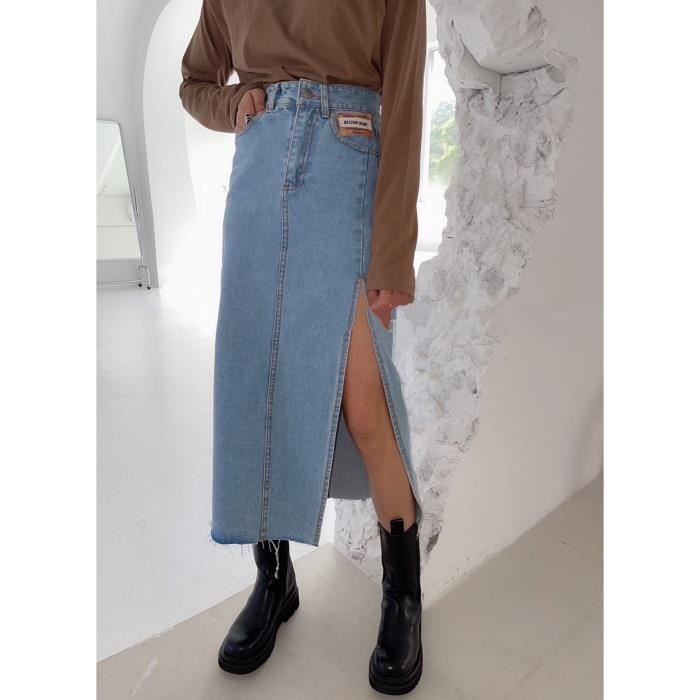 jupe en jean avec bande sur le cote