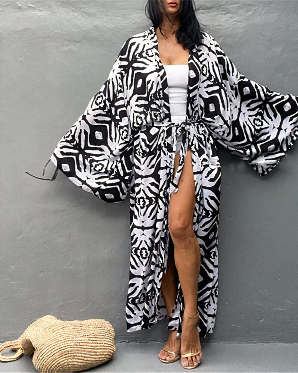 kimono plage dentelle noir
