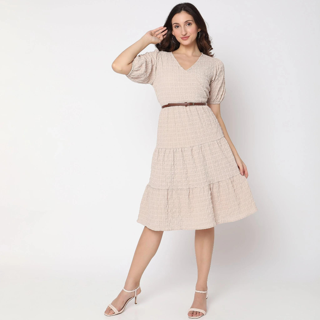 robe beige et blanche