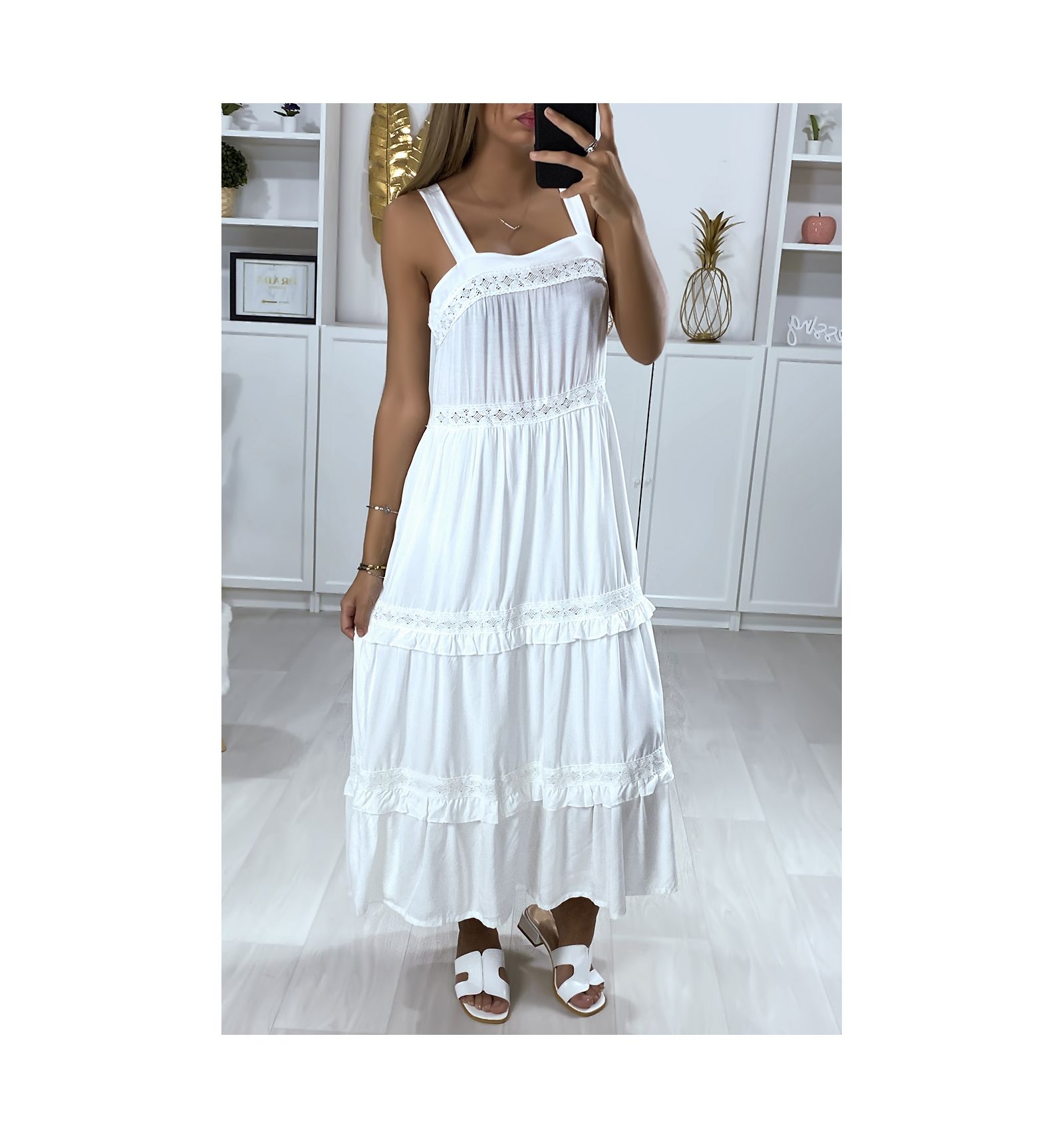 robe blanche bretelle coton