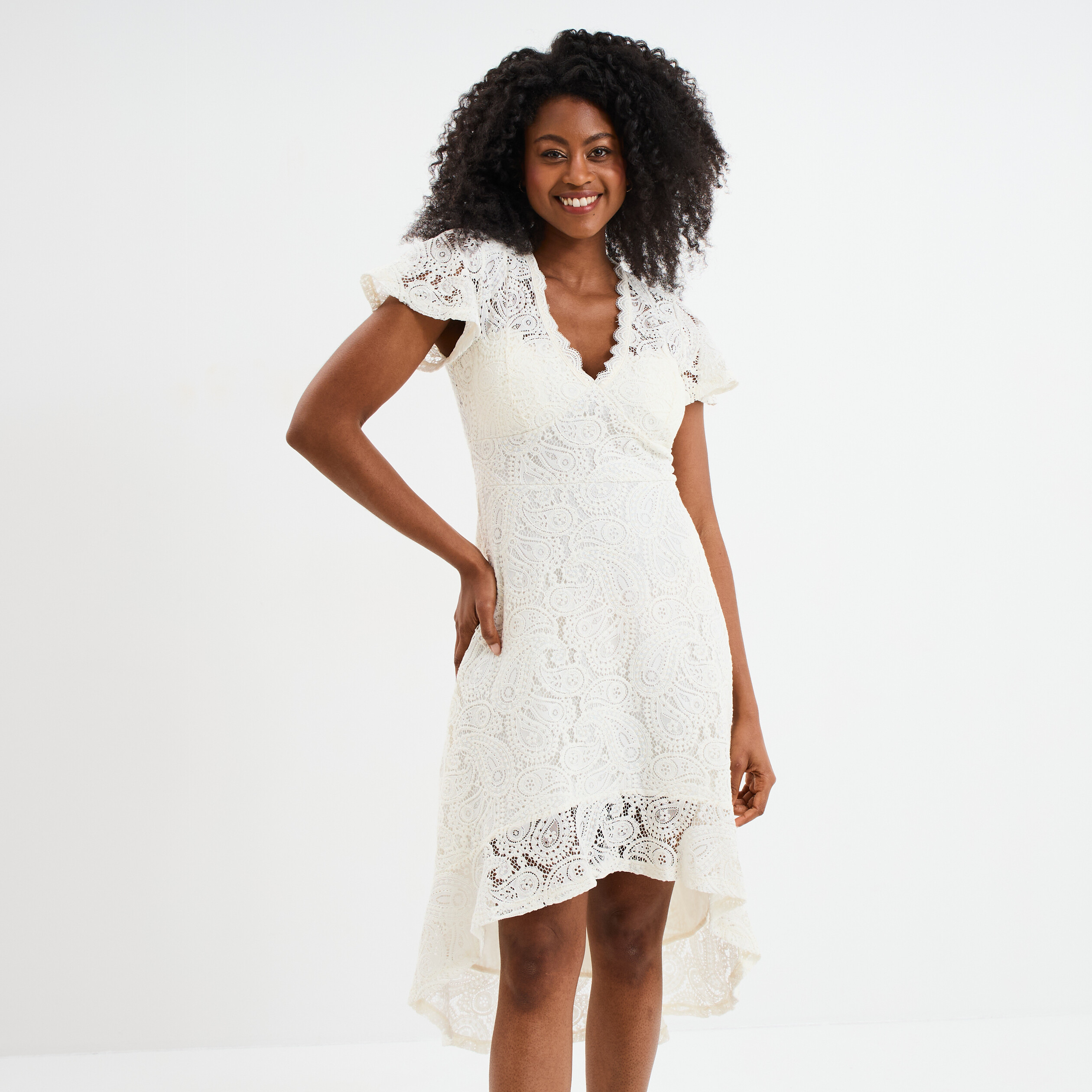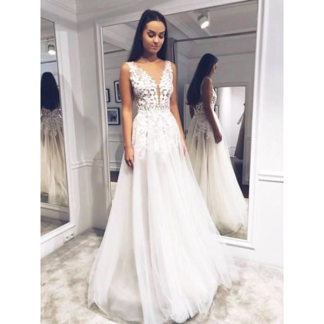 robe blanche col v dentelle