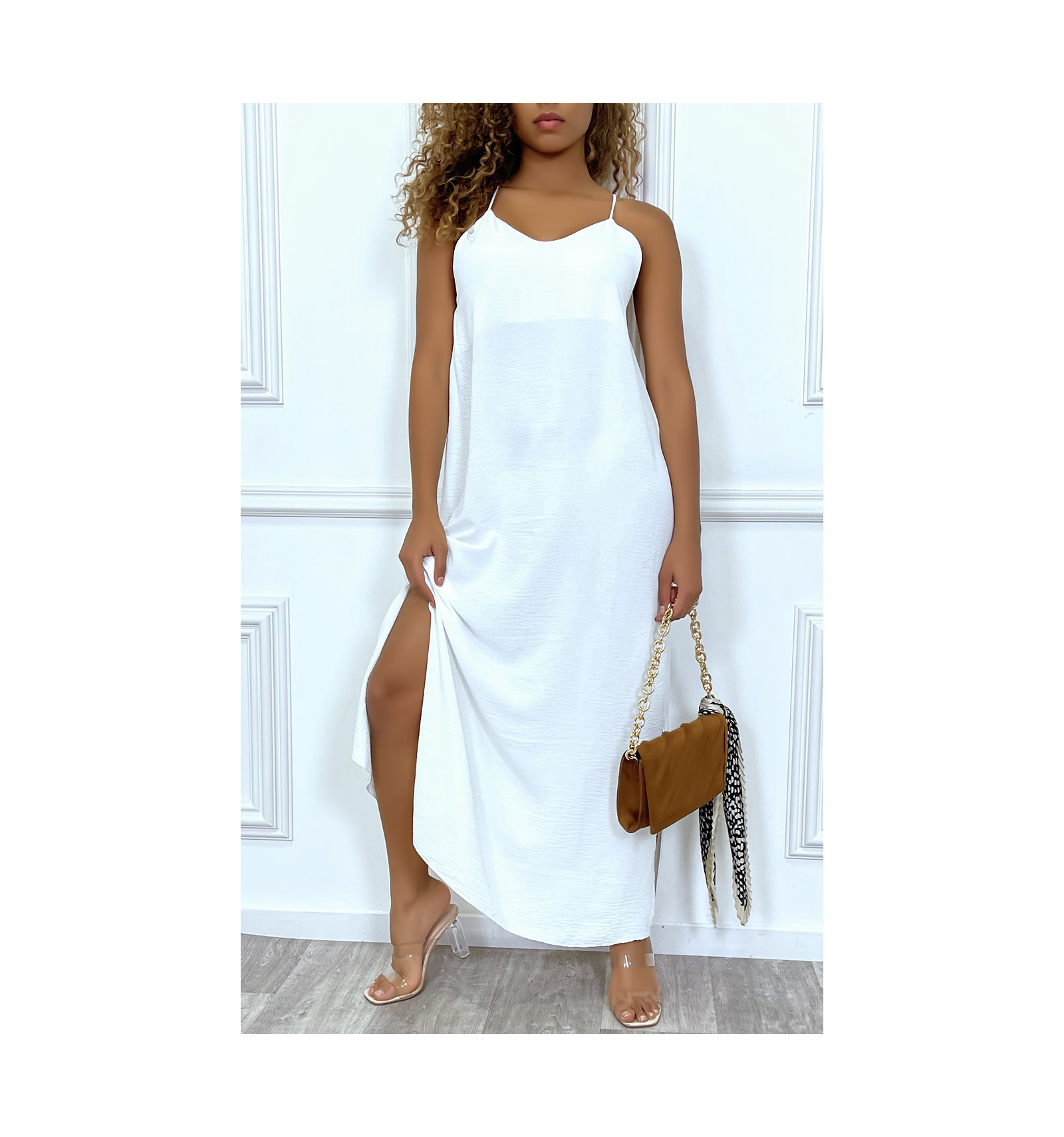 robe blanche courte fine bretelle