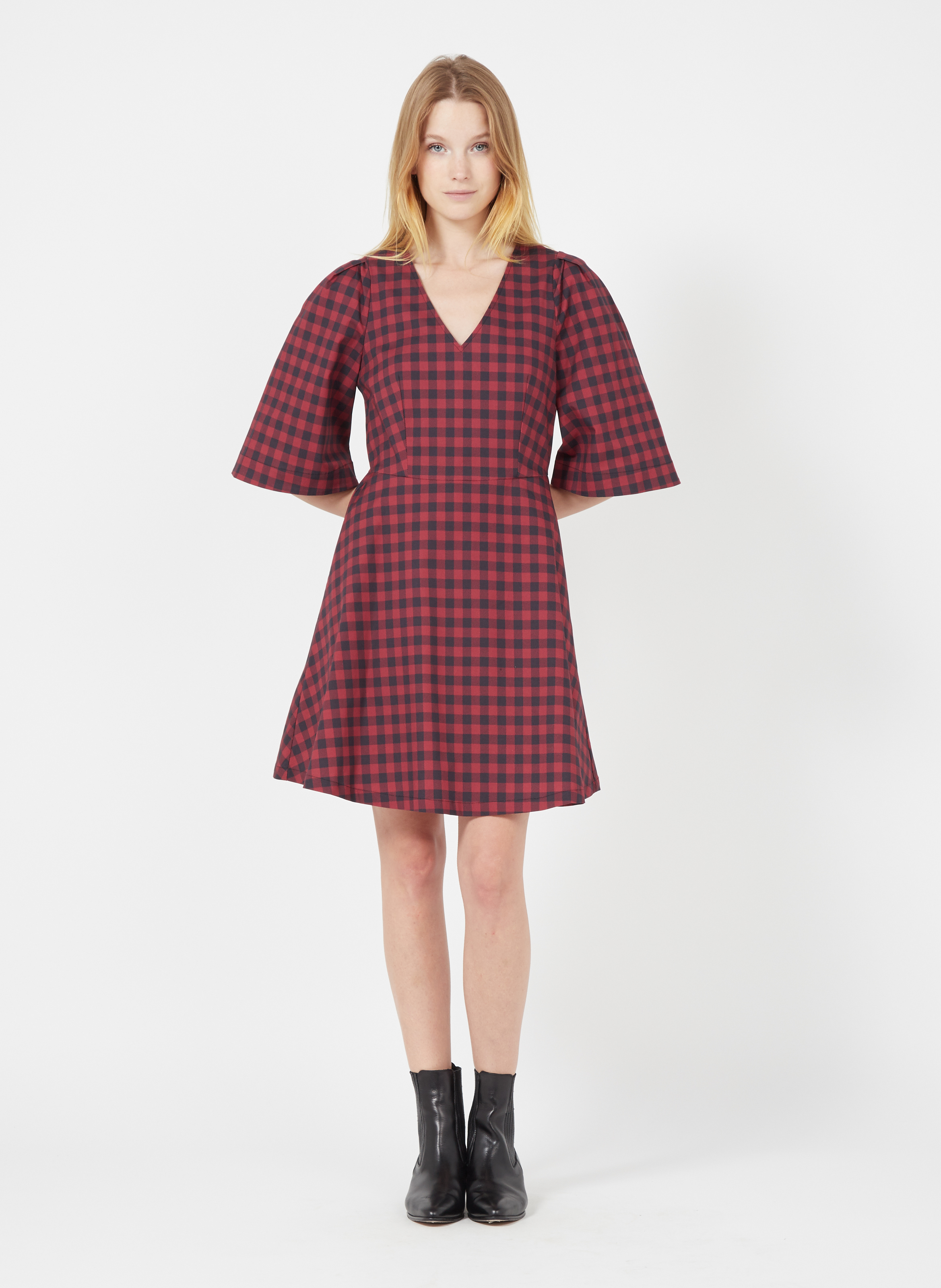 robe carreaux rouge femme